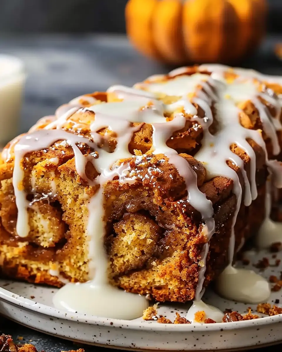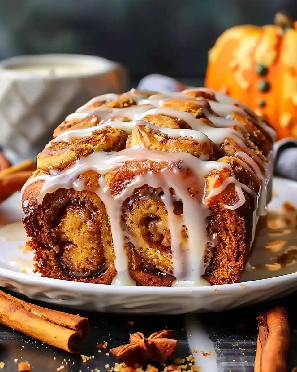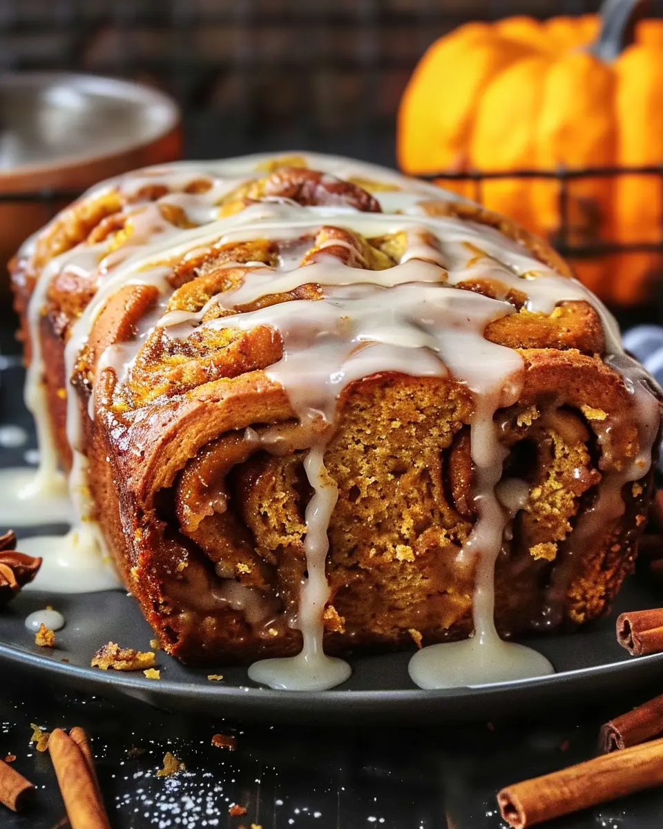 PrintBest Pumpkin Bread Recipe: Indulgent Cinnamon Roll Delight with Cream Cheese Glaze