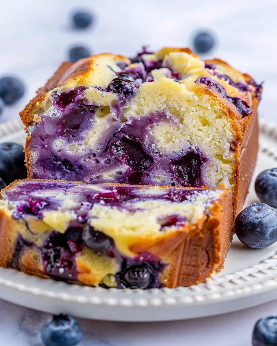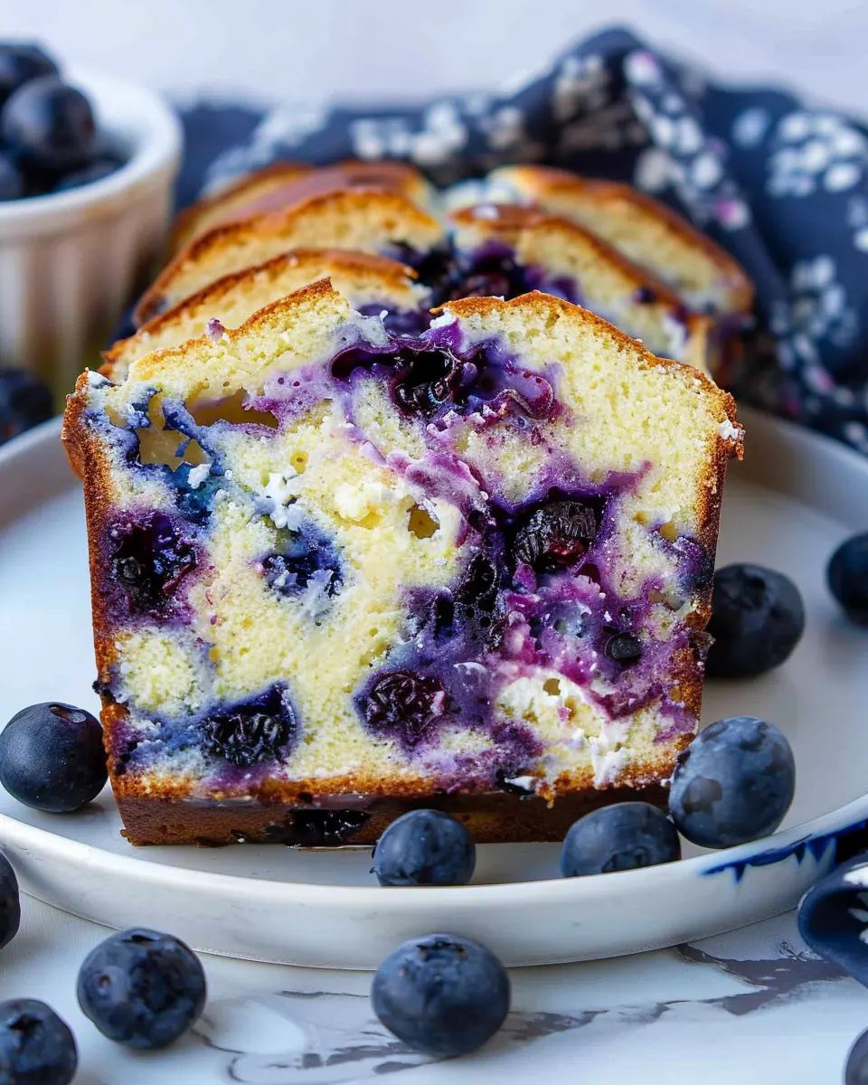 A deliciously moist loaf made with cream cheese and fresh blueberries, perfect for a sweet treat any time of the day.