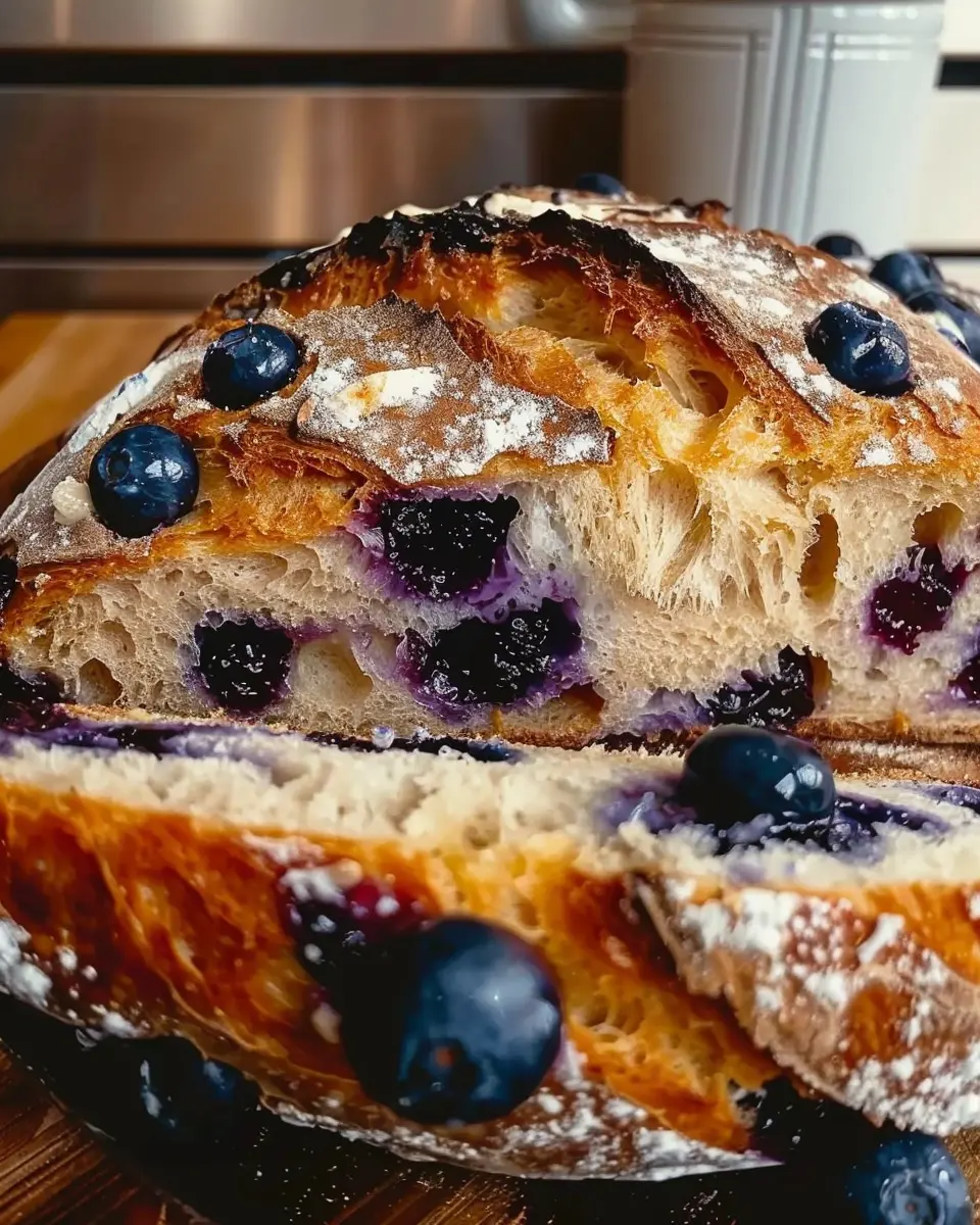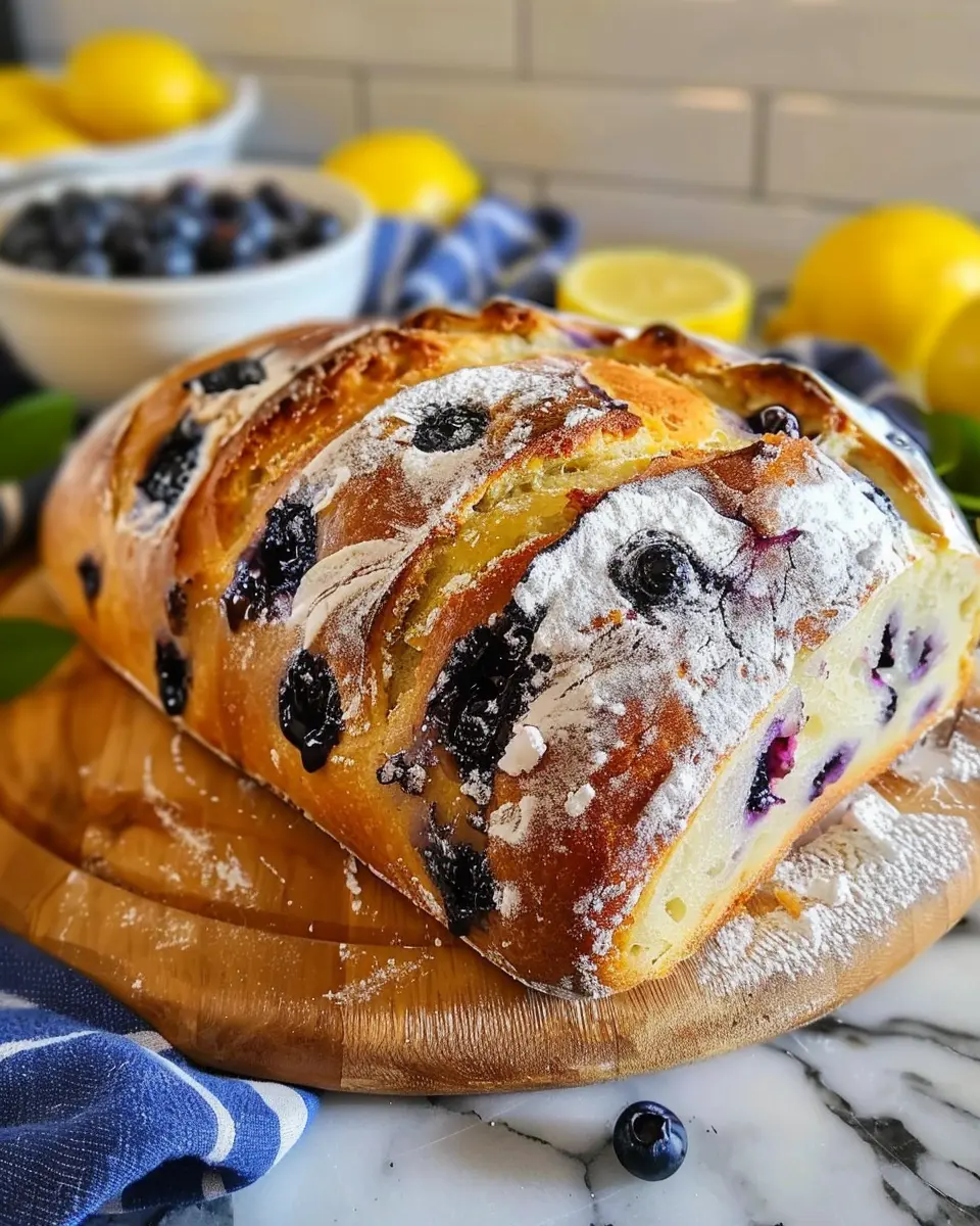 A delightful blend of blueberries, lemon, and cream cheese in homemade sourdough bread.