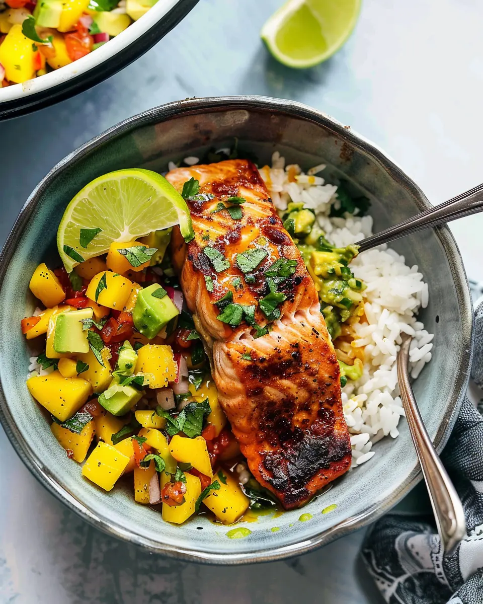 These BBQ Salmon Bowls with Mango Avocado Salsa are a deliciously healthy breakfast option that combines vibrant flavors and nourishing ingredients.