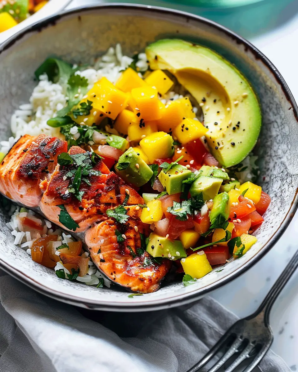 Transport yourself to a sunny beach with this delicious twist! Combine perfectly cooked BBQ salmon with vibrant mango salsa. For added zest, consider topping it off with a sprinkle of lime juice and fresh cilantro. This bowl isnโt just a feast for the taste buds; itโs also a visual treat bursting with color.