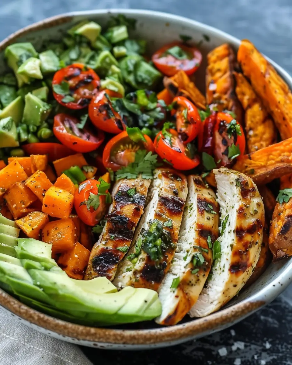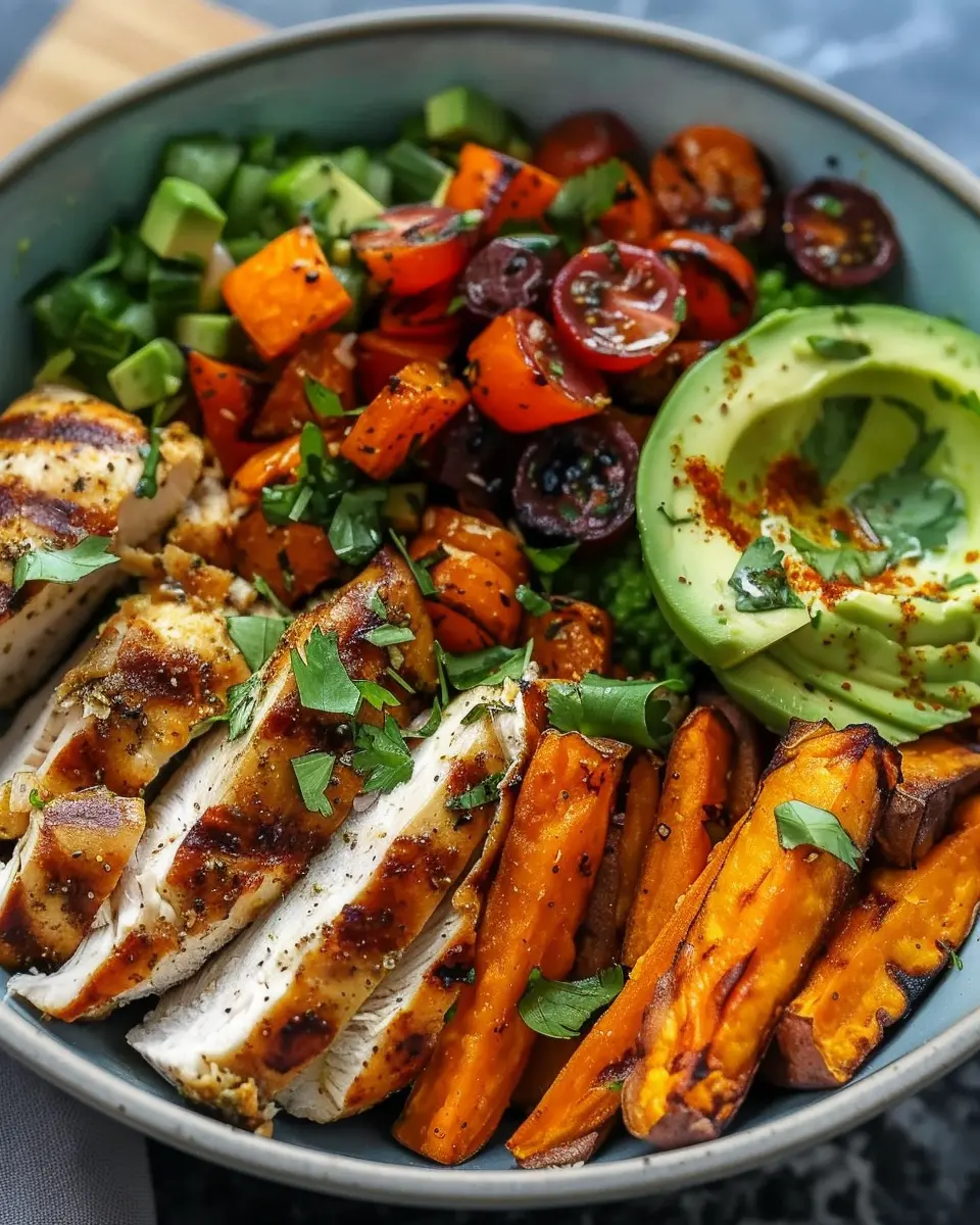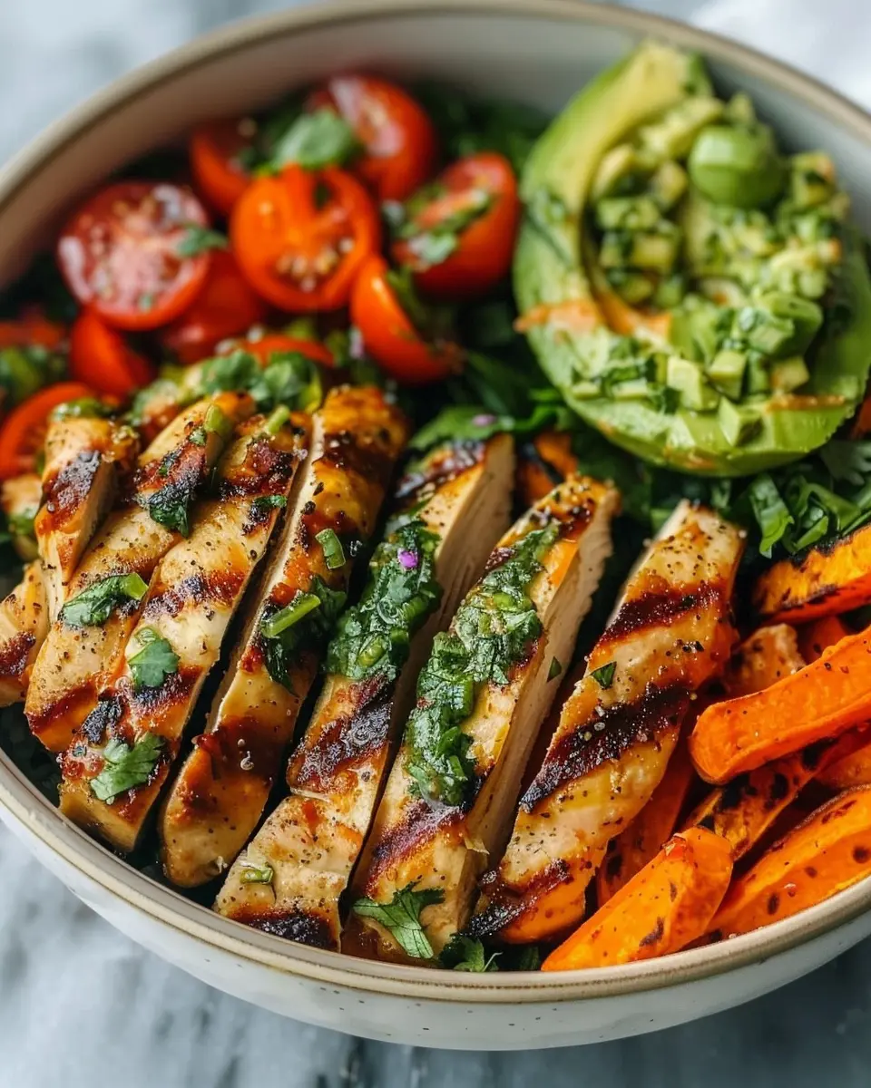 By incorporating more breakfast bowl recipes into your morning routine, youโll not only make your breakfast quick and enjoyable but also enrich your overall daily nutrition. Ready to dive into our delicious recipe for a Grilled Herb Chicken Bowl with Sweet Potato Fries and Avocado Salsa? Letโs get started!
