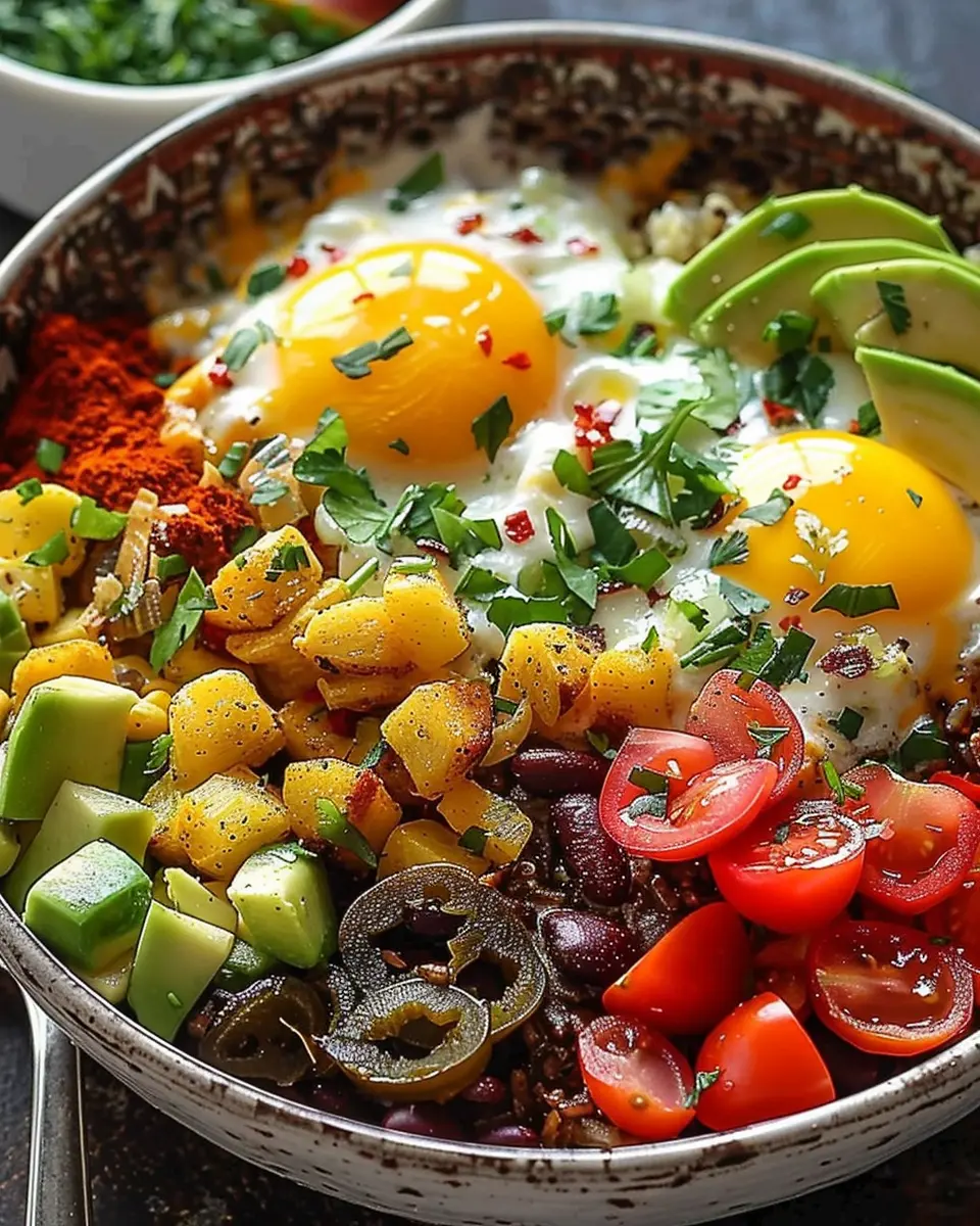 Finally, the moment has arrived! Serve your beautifully assembled breakfast bowl warm, and dig in. Take a moment to appreciate the color and aroma of your creation. Not only does it look fantastic, but it also nourishes you for the day ahead.