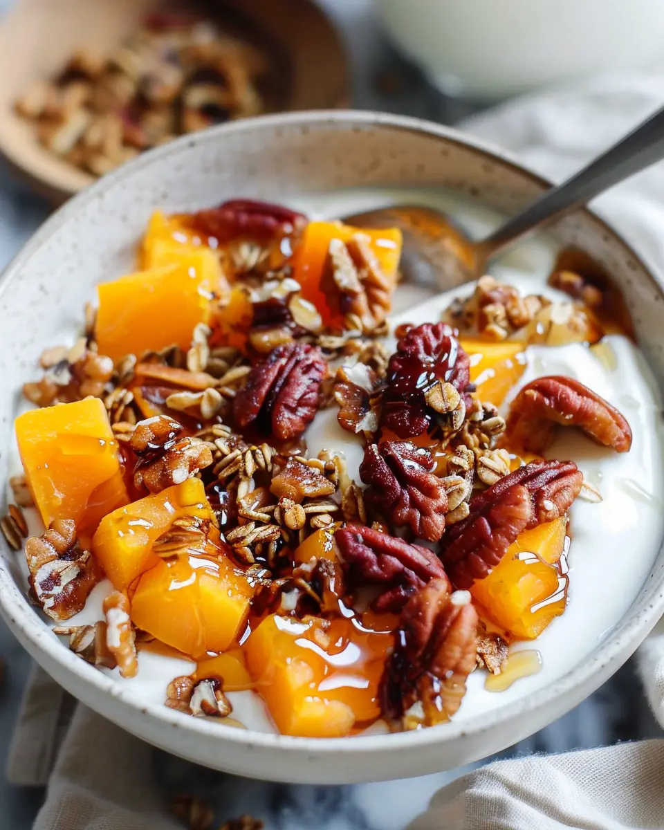 Looking to satisfy your sweet tooth? Consider a breakfast bowl filled with creamy yogurt, topped with a medley of fresh fruits like berries, bananas, and even a sprinkle of granola. The Maple Roasted Butternut Squash Yogurt Bowl that you might have tried is a fantastic base for this!
