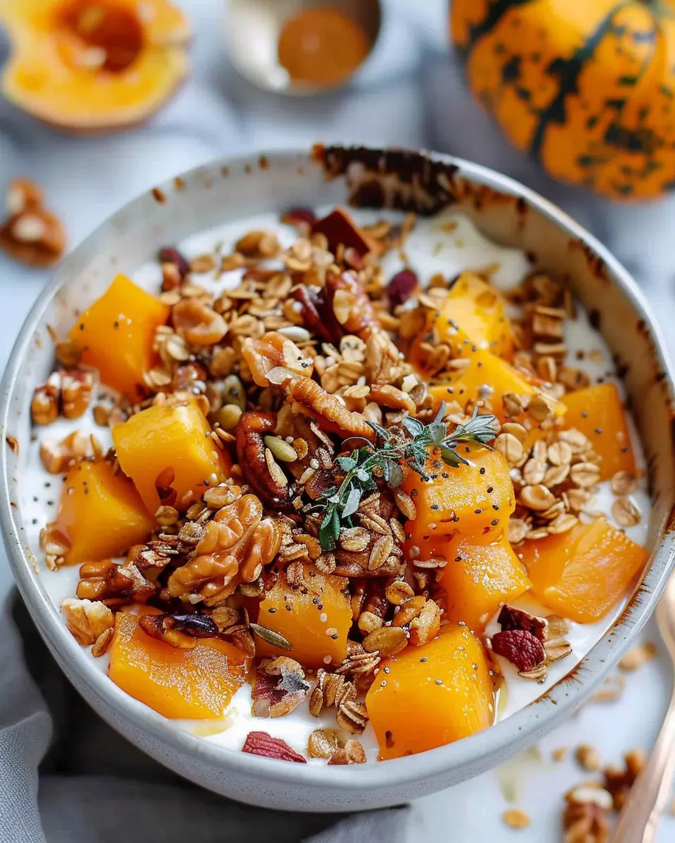 Keywords: breakfast bowl, healthy breakfast, yogurt bowl, butternut squash