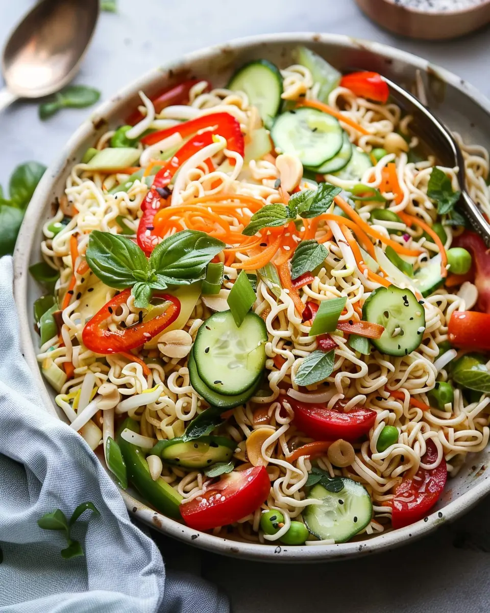 Delicious Salad Recipes Ideas: Easy Cold Ramen Noodle Salad with Turkey Bacon