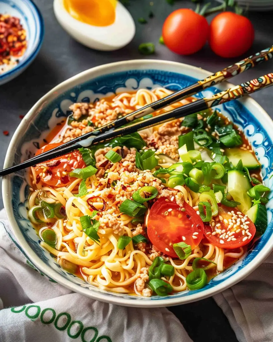 Delicious Salad Recipes Ideas: Easy Tomato Ramen with Turkey Bacon