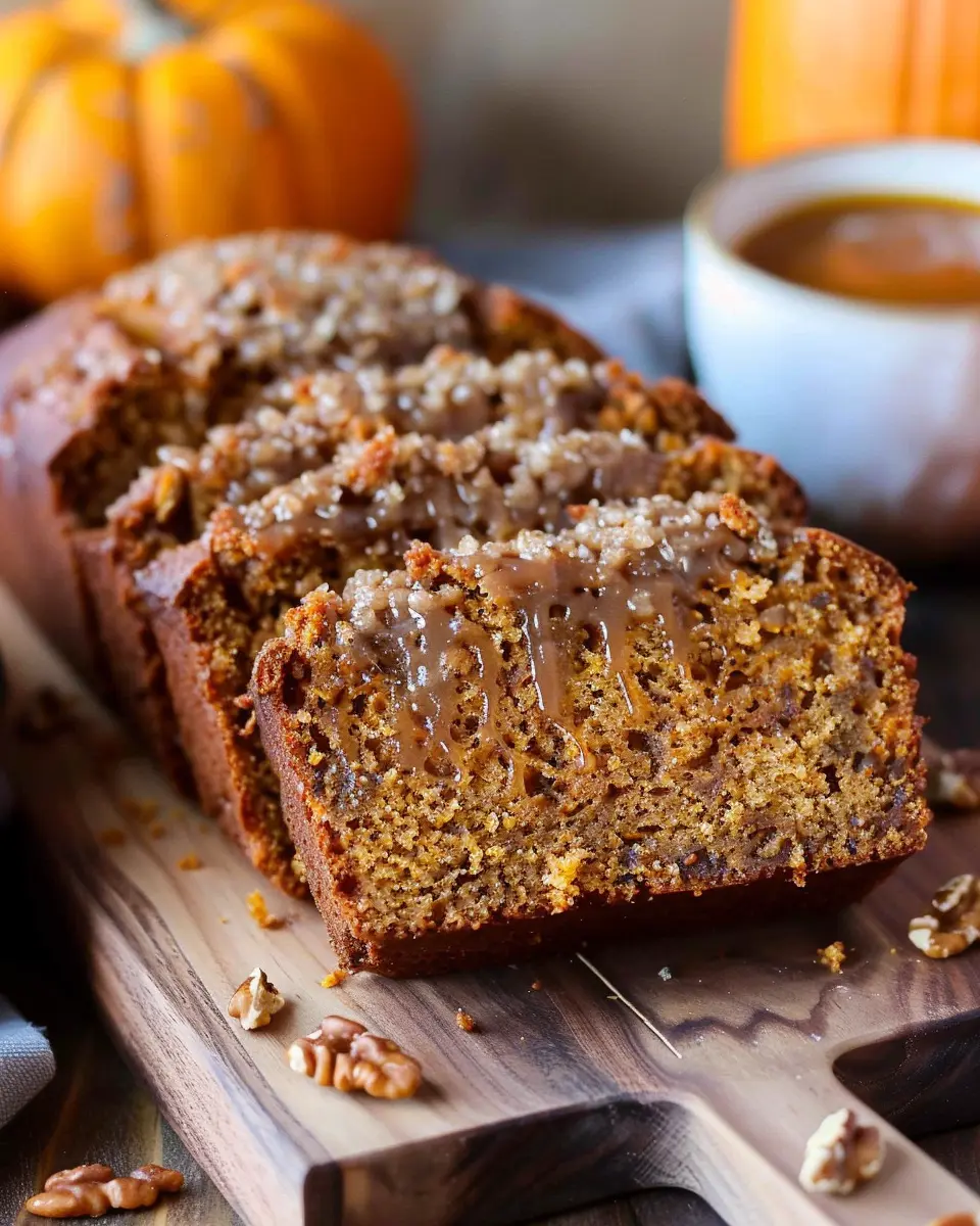 Simple Soft Bread: Indulgent Pumpkin Bread with Brown Sugar Pecan Topping