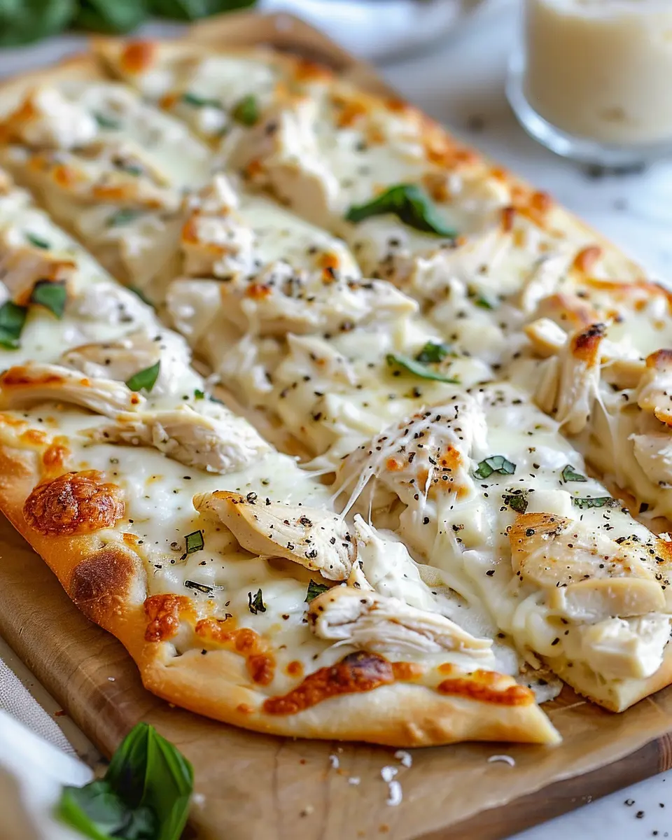 Chicken Alfredo Flatbread: Easy Recipe with Turkey Bacon Delight