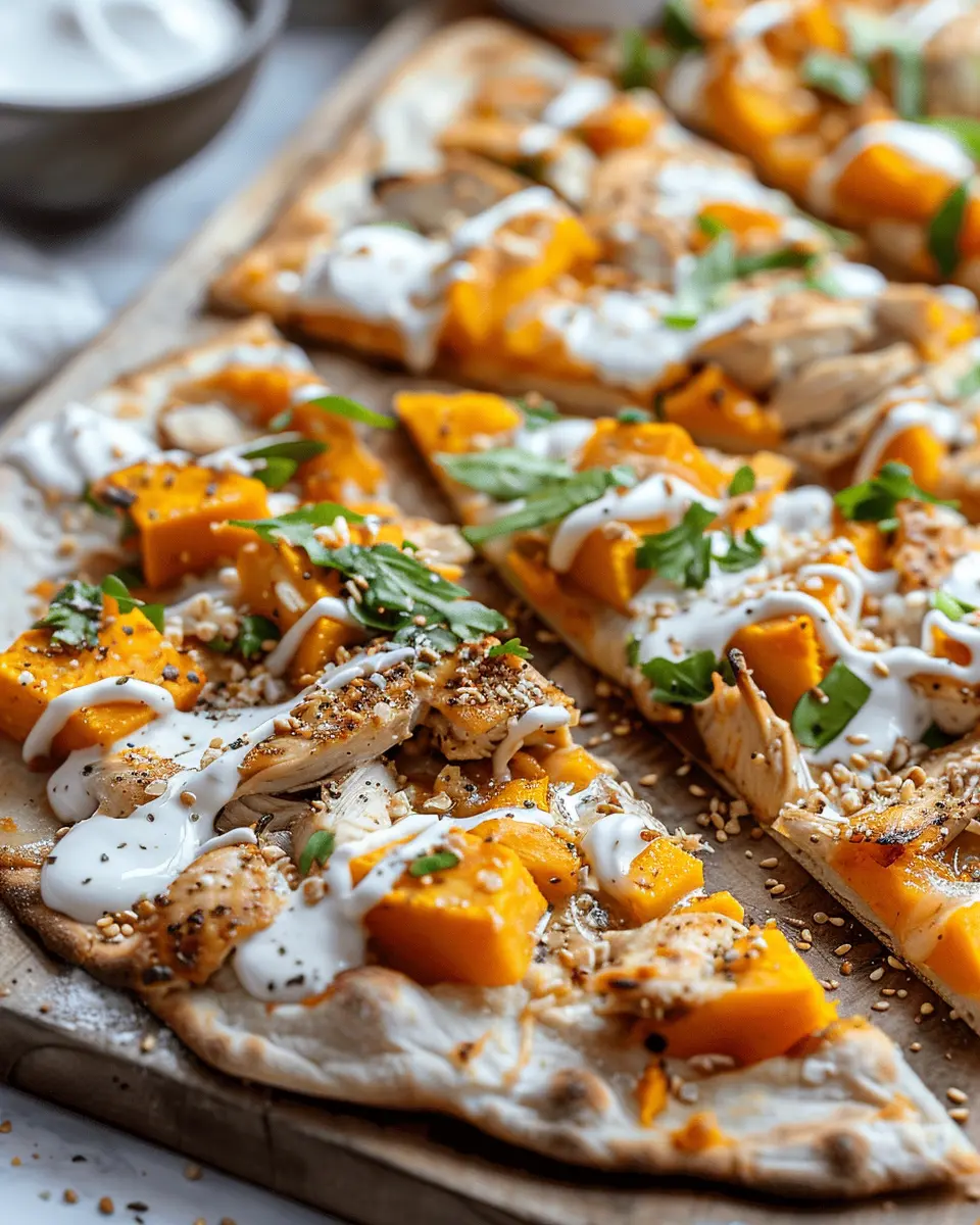 When it comes to enjoying your Chicken and Sweet Potato Flatbread, consider pairing it with bright, fresh flavors that complement the richness of the chicken and the sweetness of the potatoes. A simple arugula salad dressed with lemon vinaigrette can add a nice peppery bite, while pickled red onions can offer a tangy contrast. For those who love a little kick, a sprinkle of crumbled feta or spicy jalapeรฑos can elevate the flavor profile beautifully.