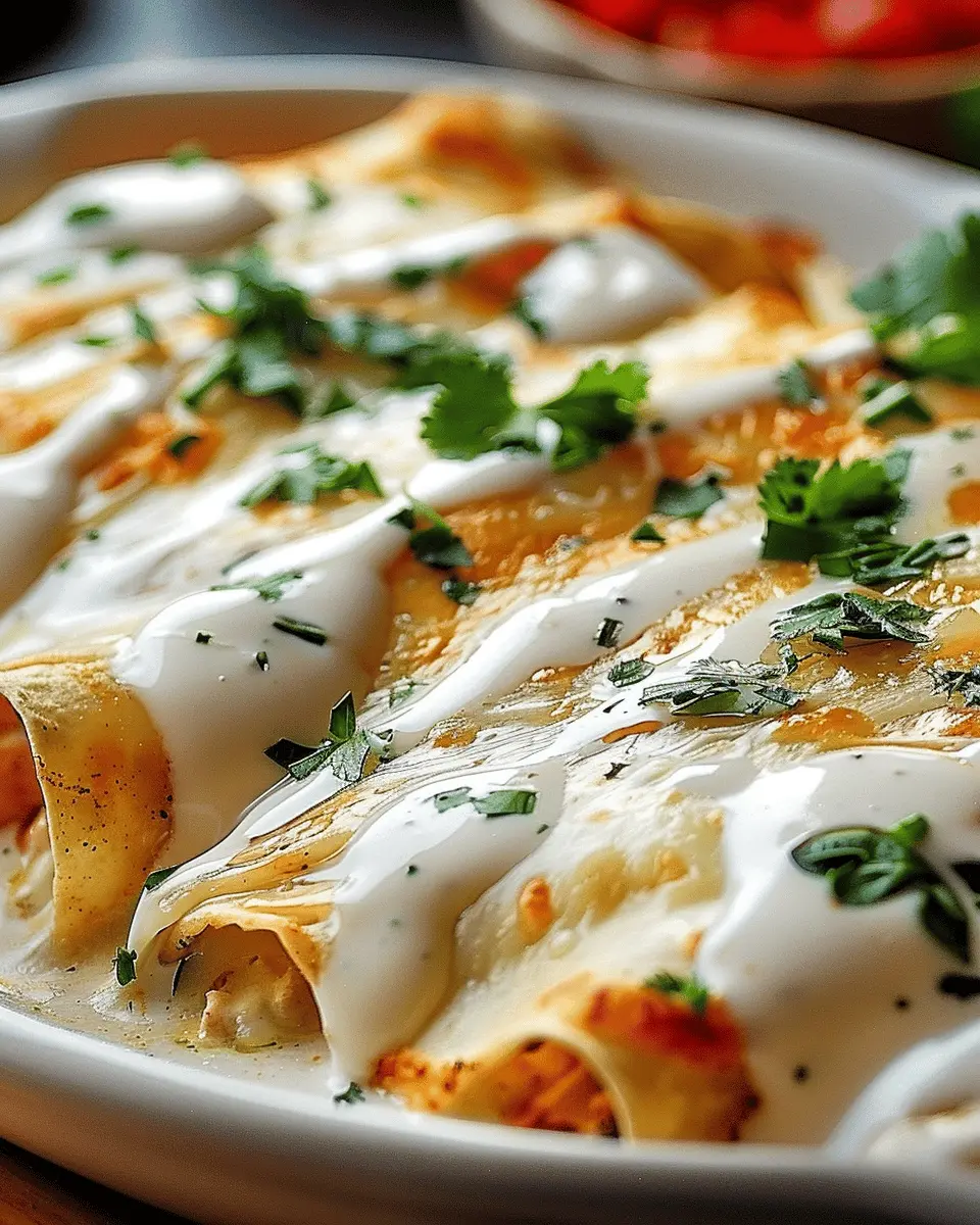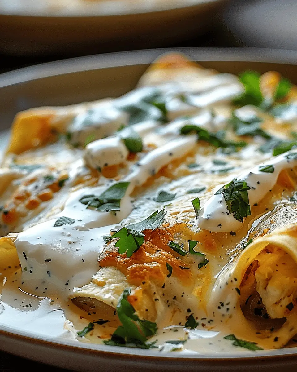 In summary, these enchiladas are perfect for any weeknight gathering or even a cozy family dinner. Ready to embark on a culinary adventure? Let’s dive into the full recipe for chicken enchiladas with sour cream white sauce!