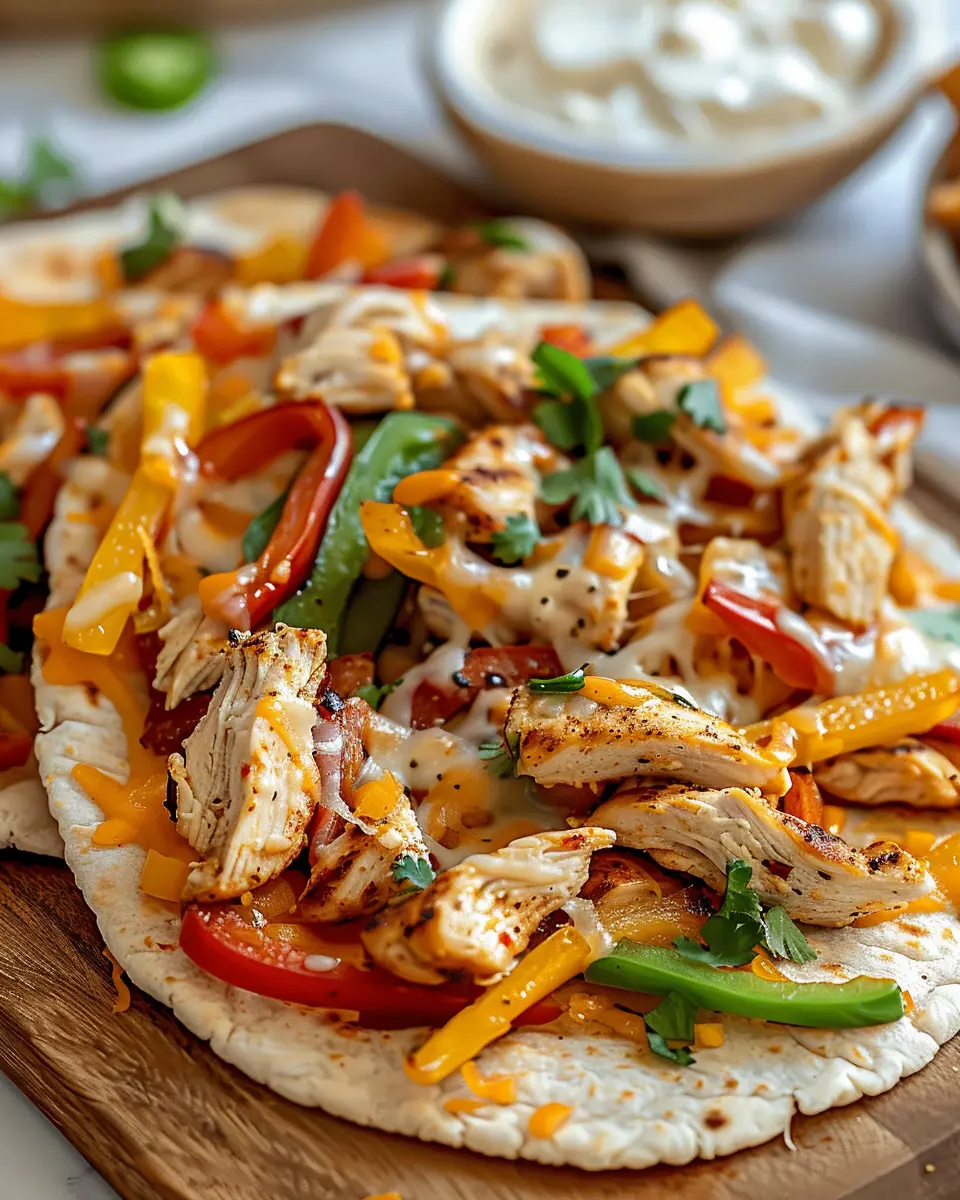 Whether youโre new to cooking or a seasoned chef, this recipe is straightforward enough to whip up on a busy weeknight while still impressing any unexpected guests. Imagine layering spiced chicken, sautรฉed veggies, and creamy sauce all on a soft flatbread. Itโs convenient and delicious, offering a delightful mix of textures and flavors.
