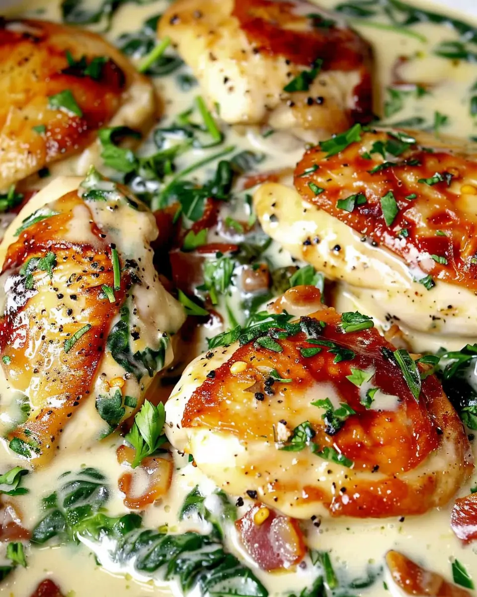 PrintChicken Florentine Delight: Easy, Creamy Recipe with Turkey Bacon
