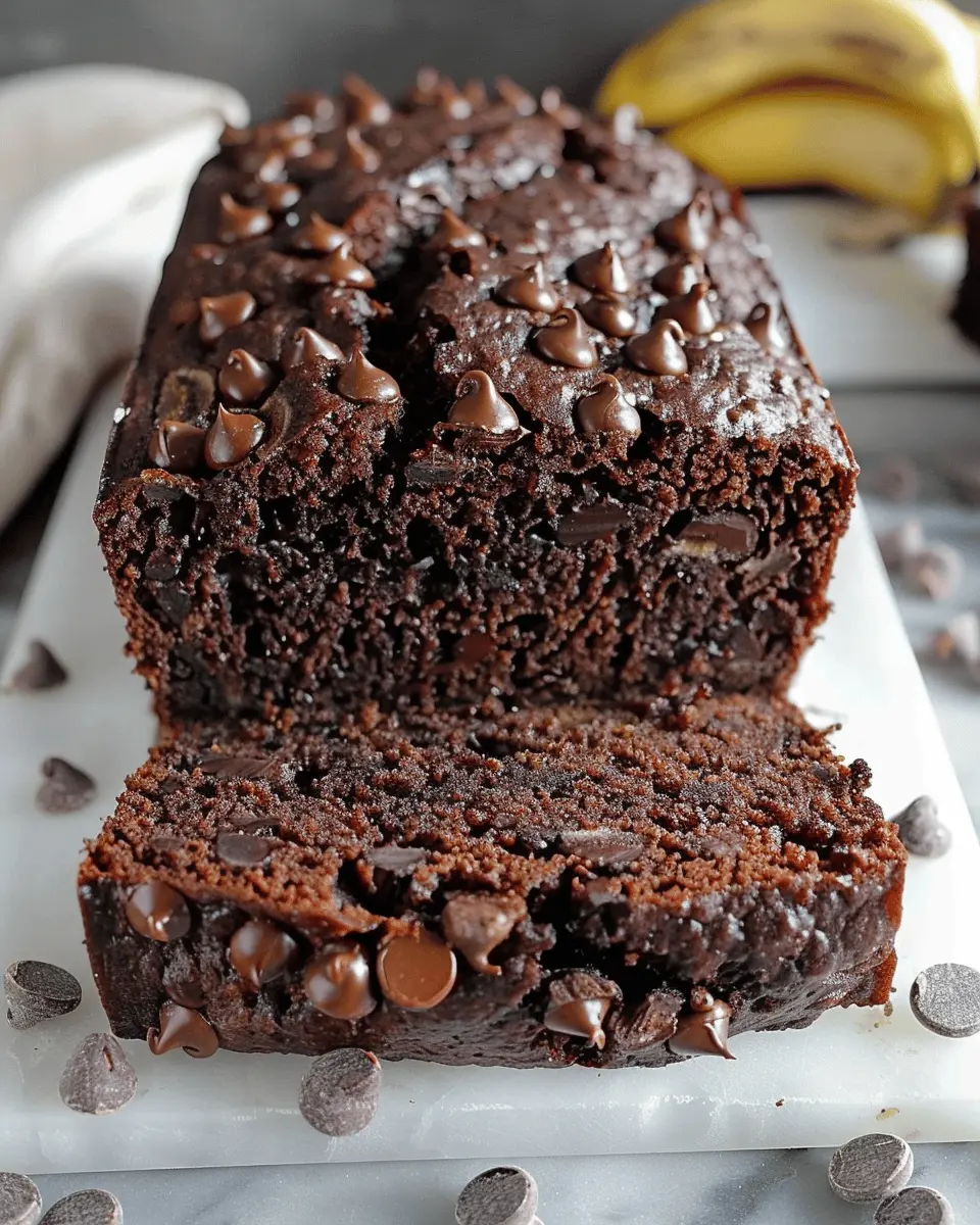 After baking, let your chocolate banana bread cool in the pan for about 10 minutes before transferring it to a wire rack. This allows the bread to set perfectly.
