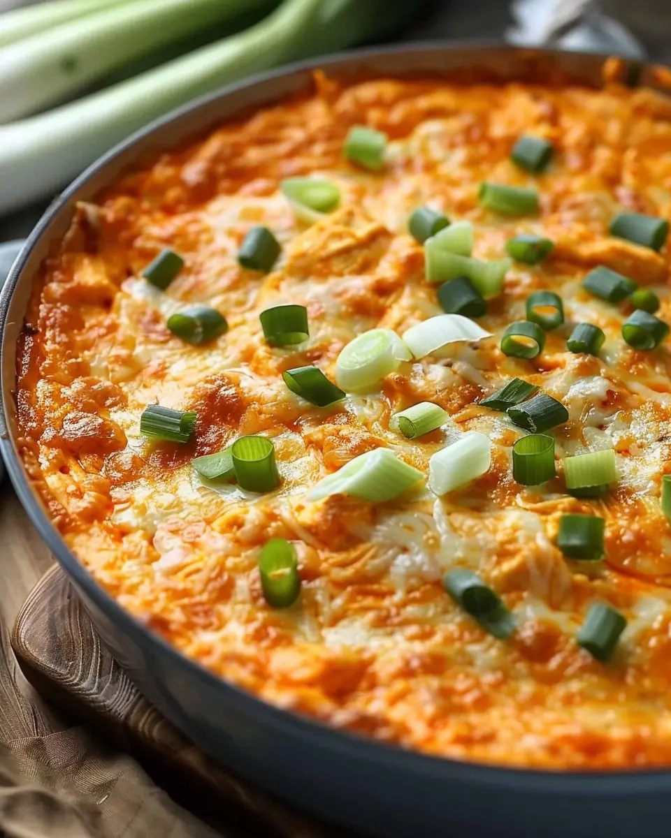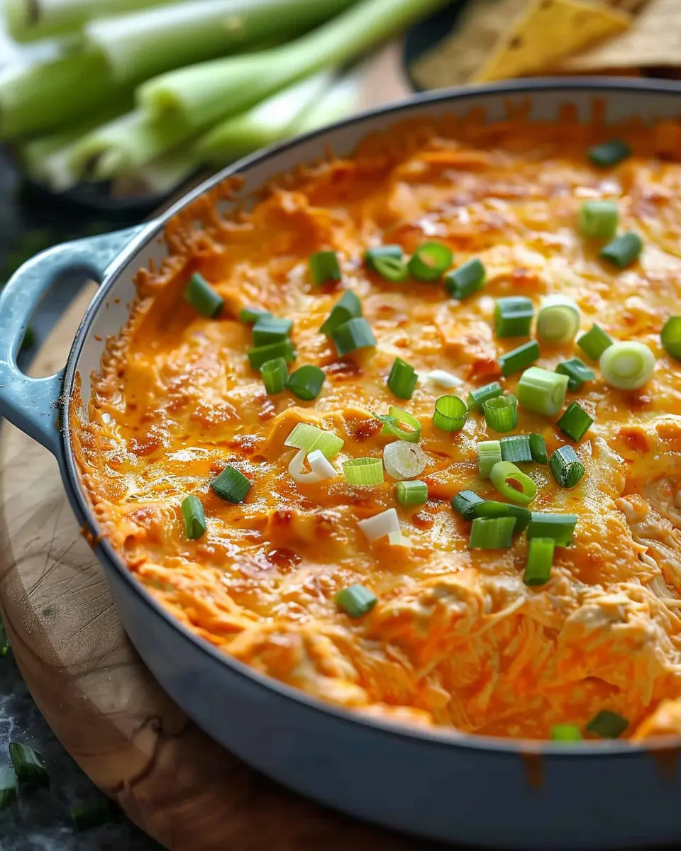 Once your dip is baked to perfection, remove it from the oven and let it cool for about 5-10 minutes. This short wait is crucial; it allows the dip to thicken up a bit and makes it easier to serve. Just before serving, you can sprinkle some chopped green onions on top for an extra pop of color!