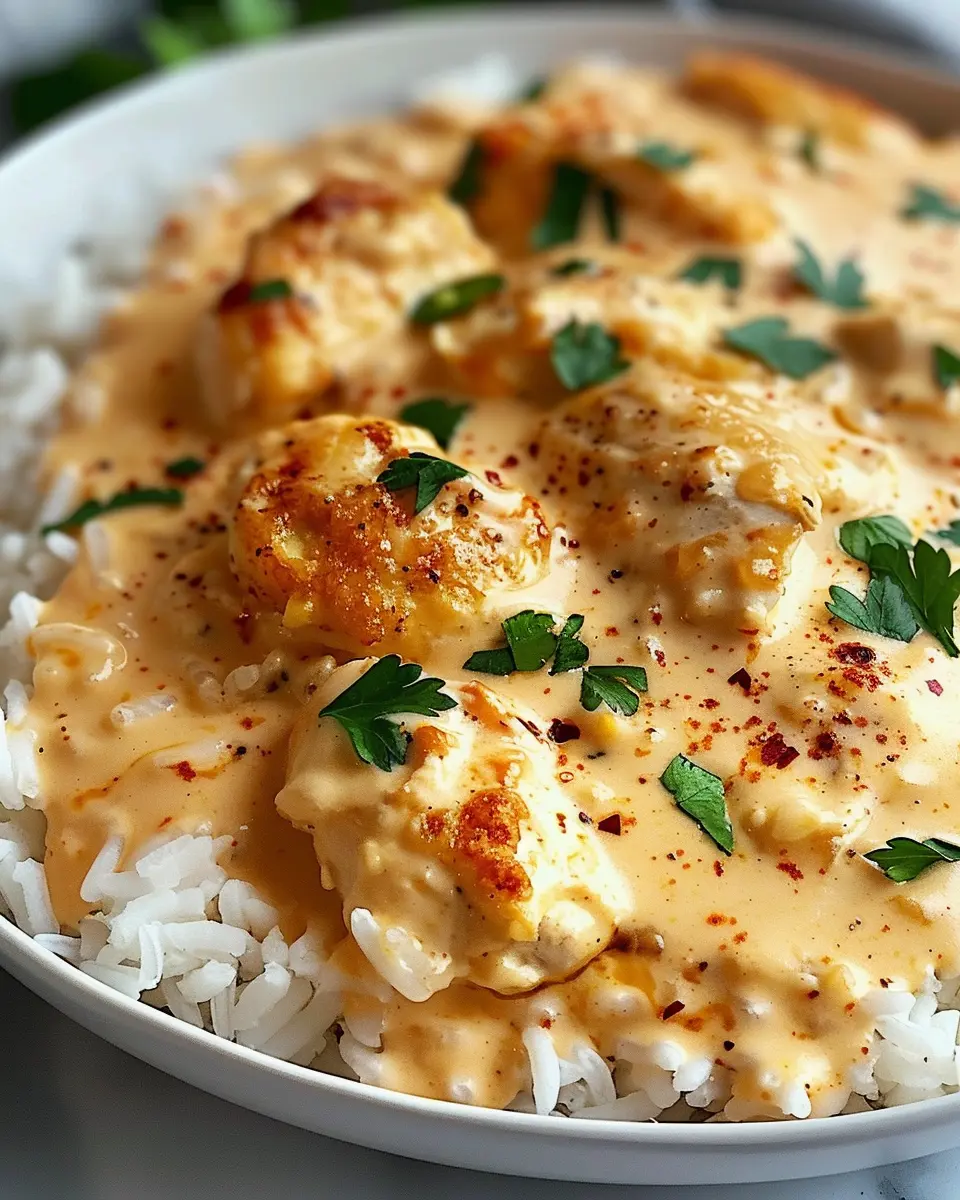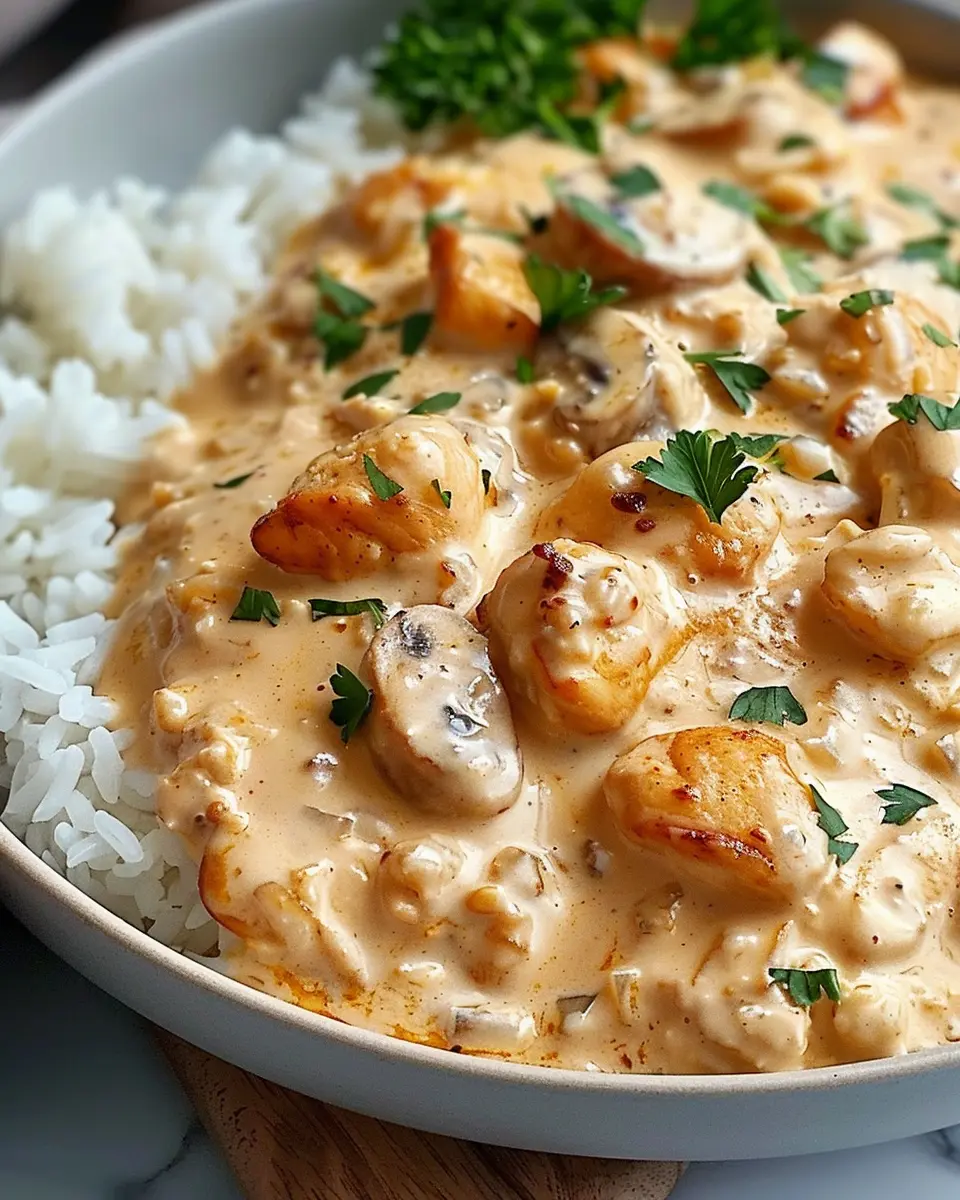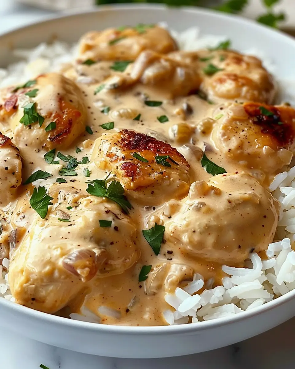 A delightful recipe for creamy smothered chicken and rice that combines comfort and indulgence.