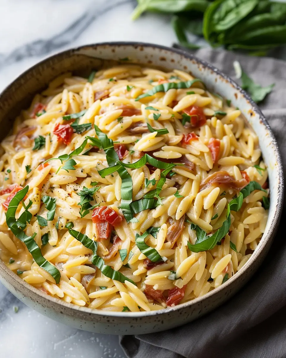 PrintCreamy Tuscan Orzo with Turkey Bacon: An Indulgent Twist