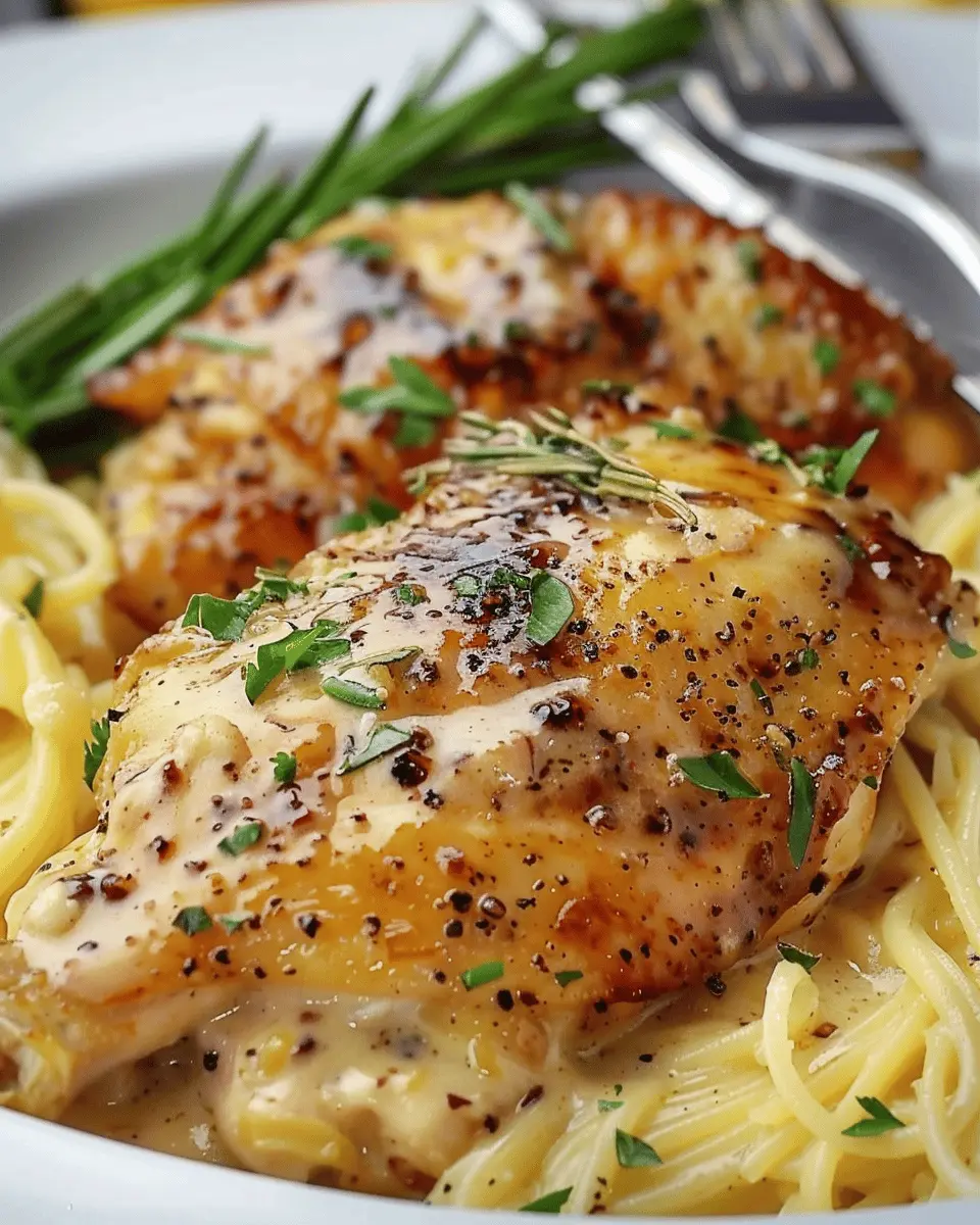 2. Pour the creamy sauce over the chicken, ensuring each piece is coated.
