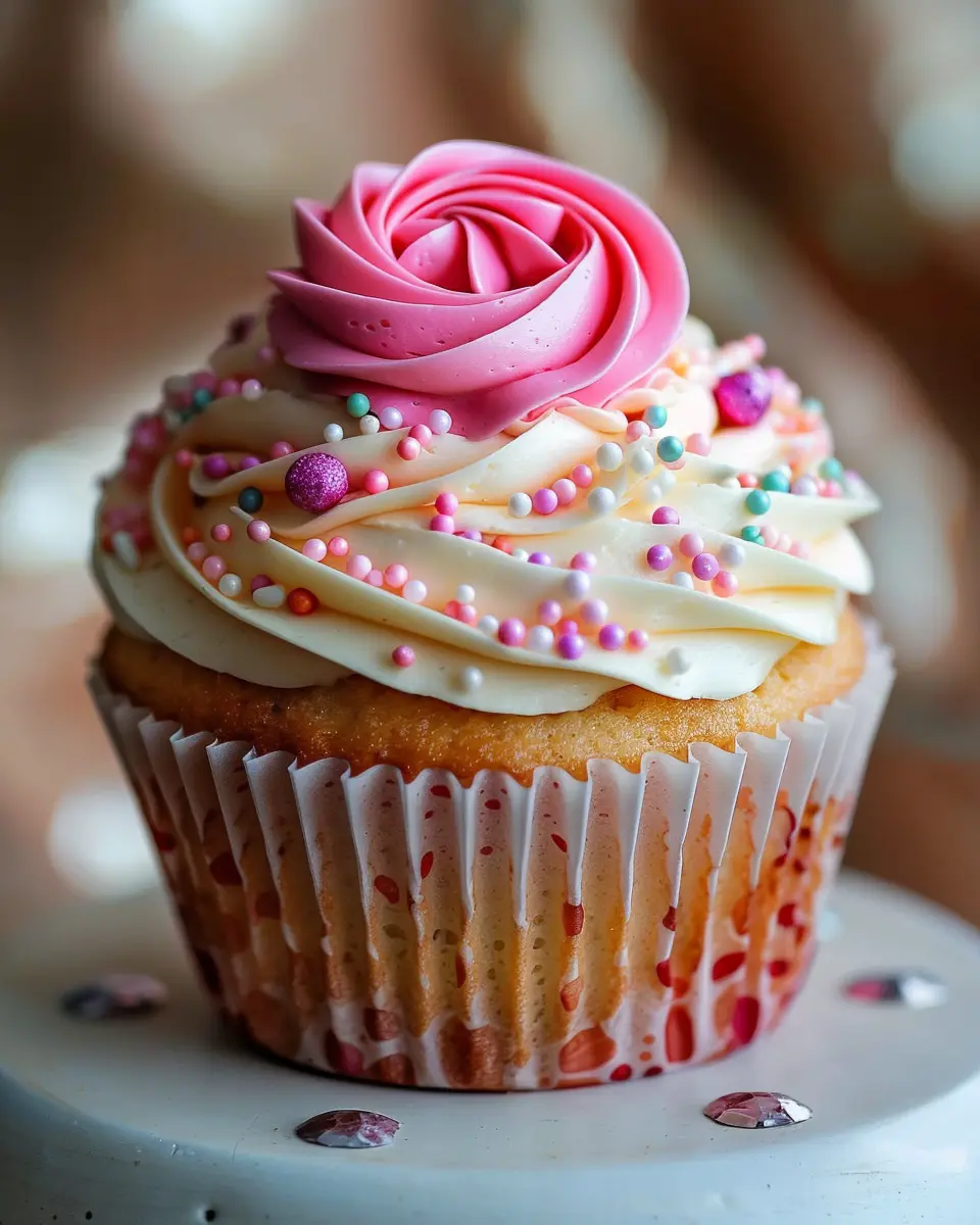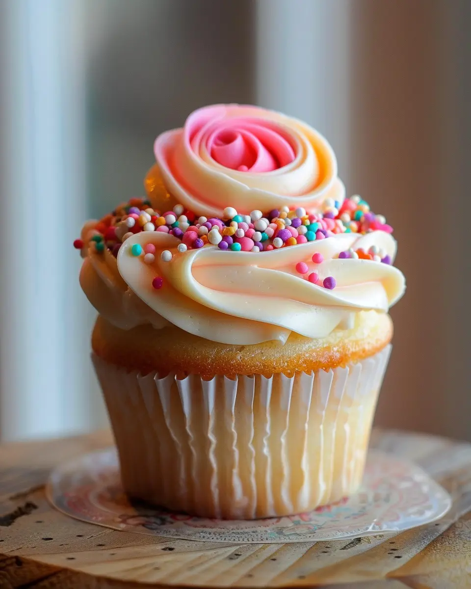PrintDelicious cupcake recipe for the best fluffy vanilla treat