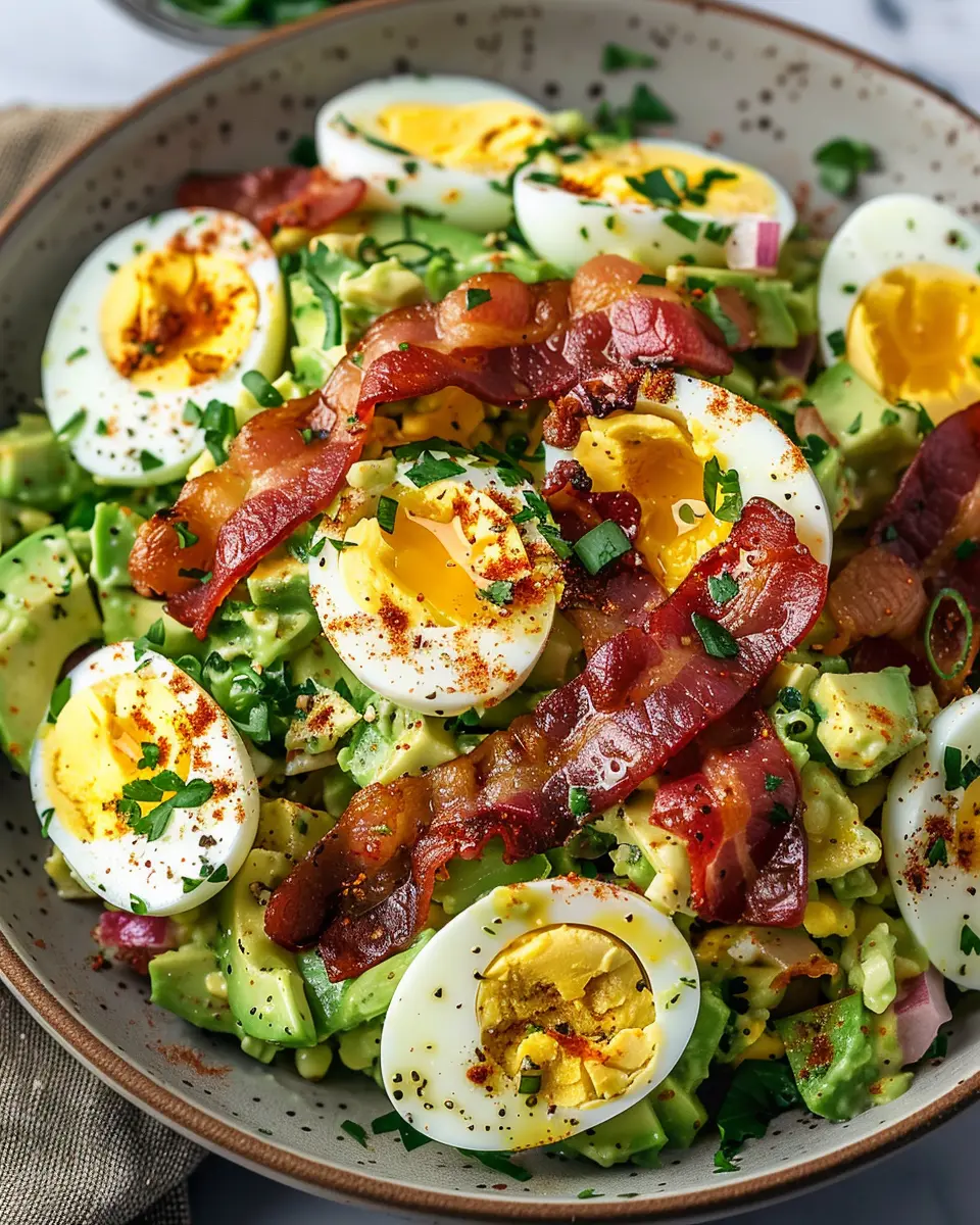 PrintDelicious Salad Recipes Ideas: Avocado Egg Salad with Crispy Turkey Bacon