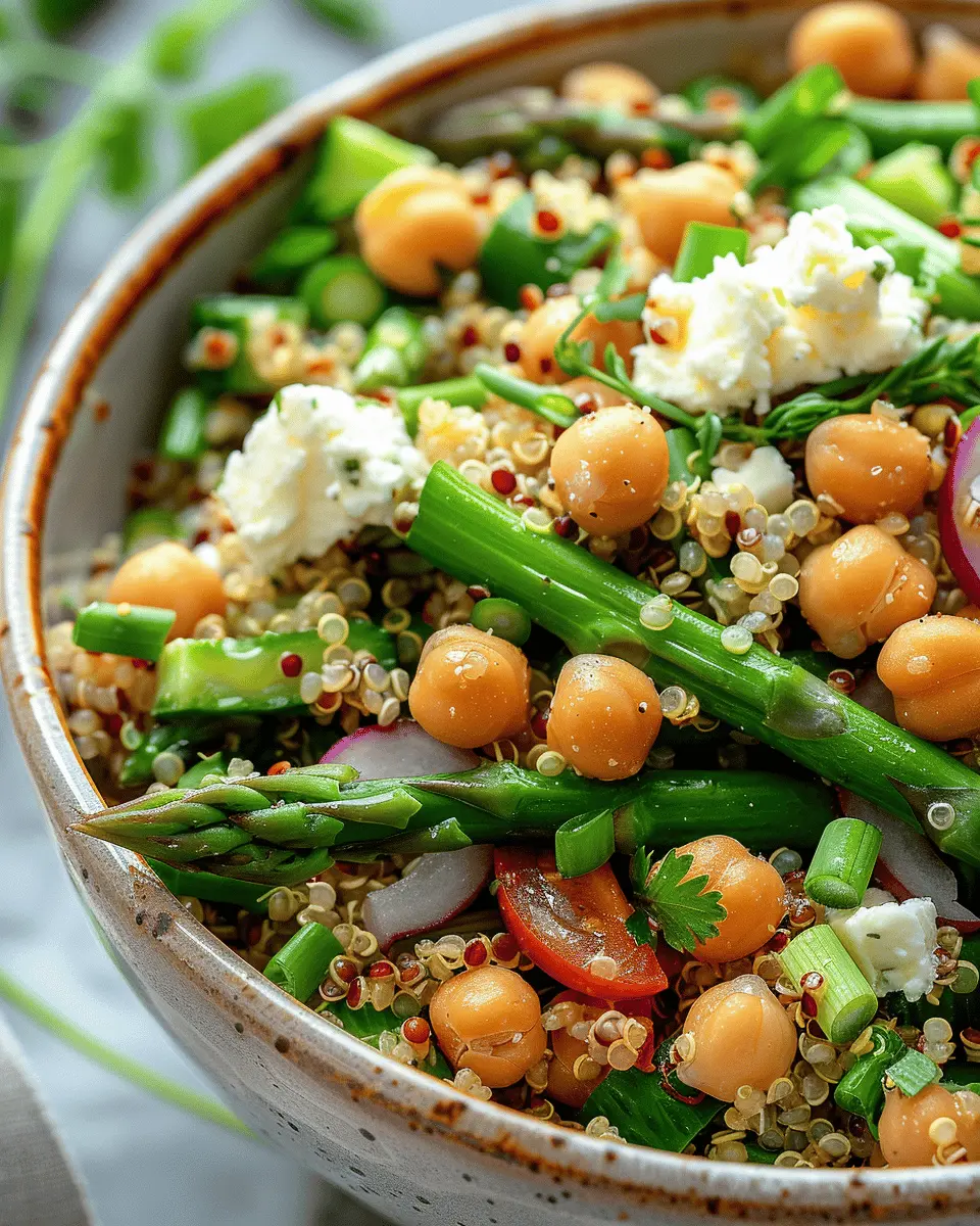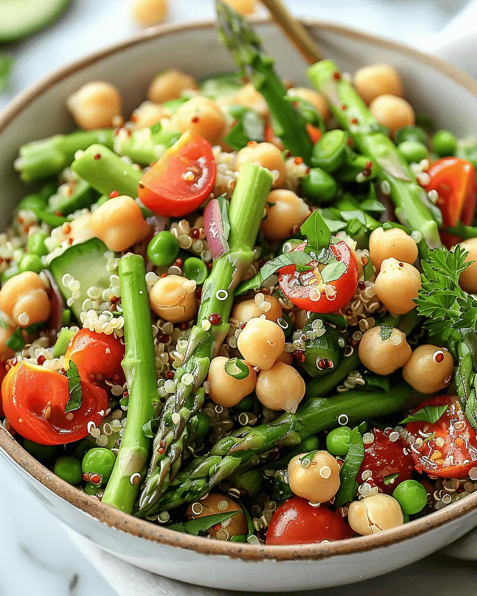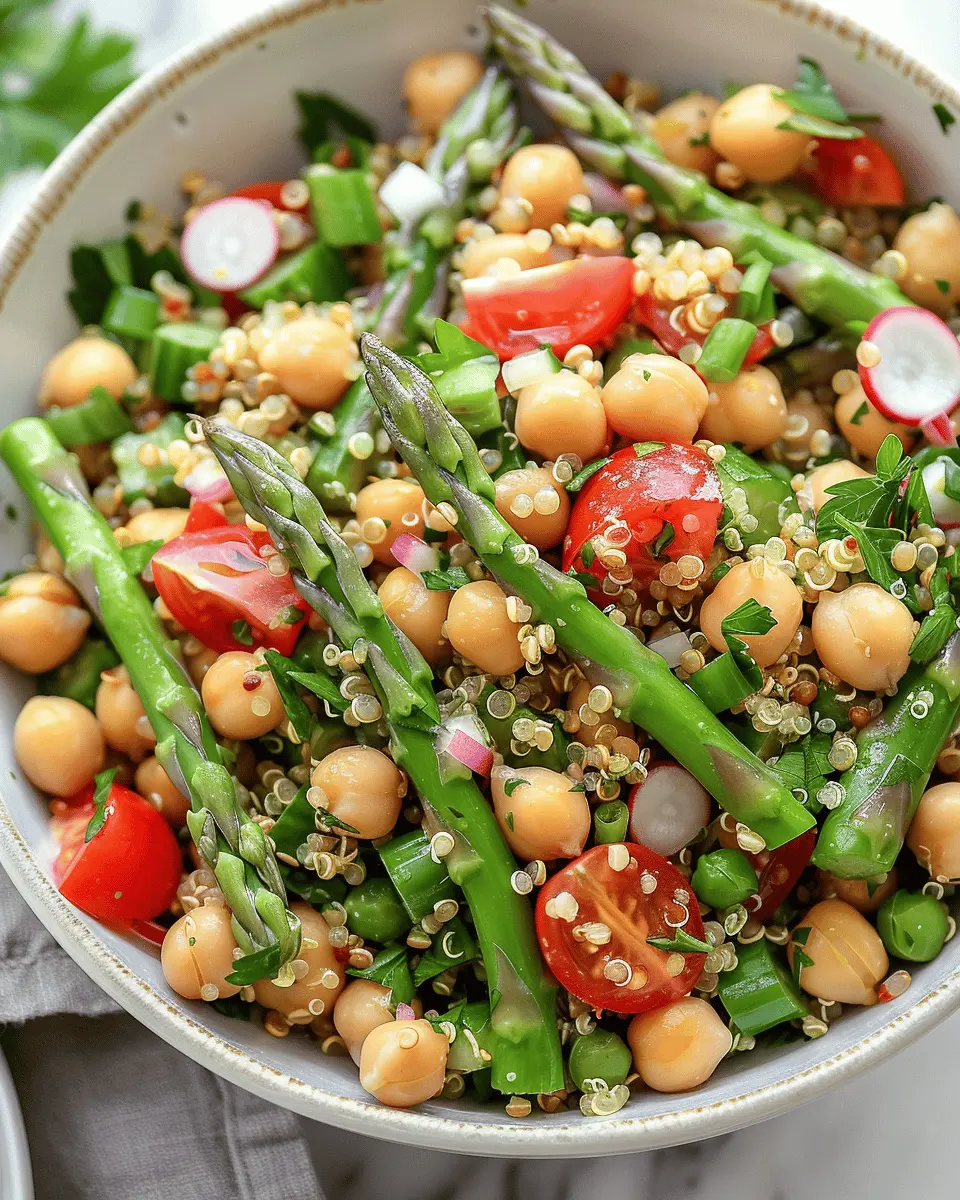 Now, let’s explore how to make your salads shine with unique flavors and textures, starting with our featured Asparagus Chickpea Quinoa Salad. Ready to dive into more delicious salad recipes ideas? Keep reading to uncover the amazing combinations that will not only result in delicious meals but also keep you feeling energized and satisfied throughout your busy day!