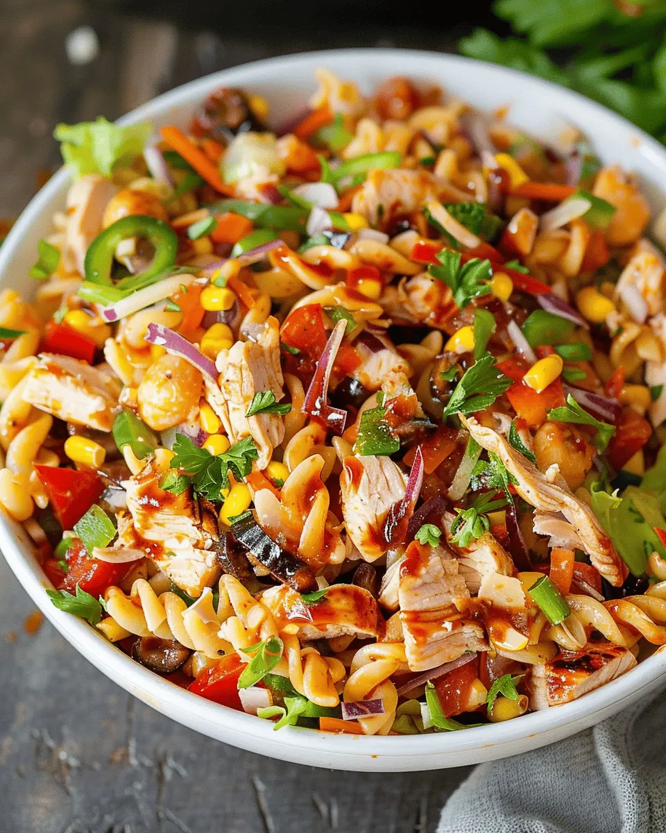 Enjoy this easy and delicious BBQ chicken pasta salad, perfect for summer gatherings and picnics.