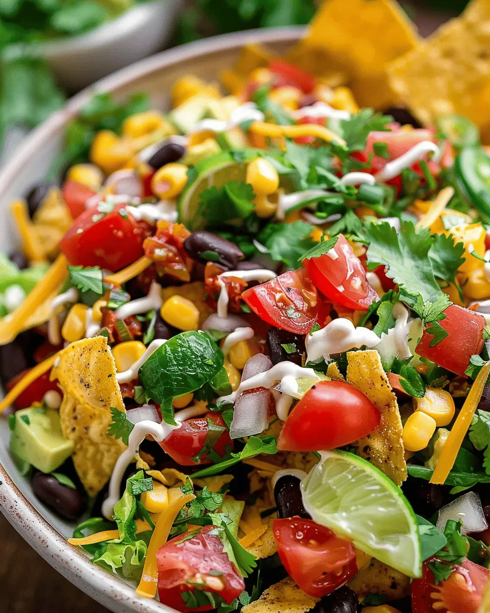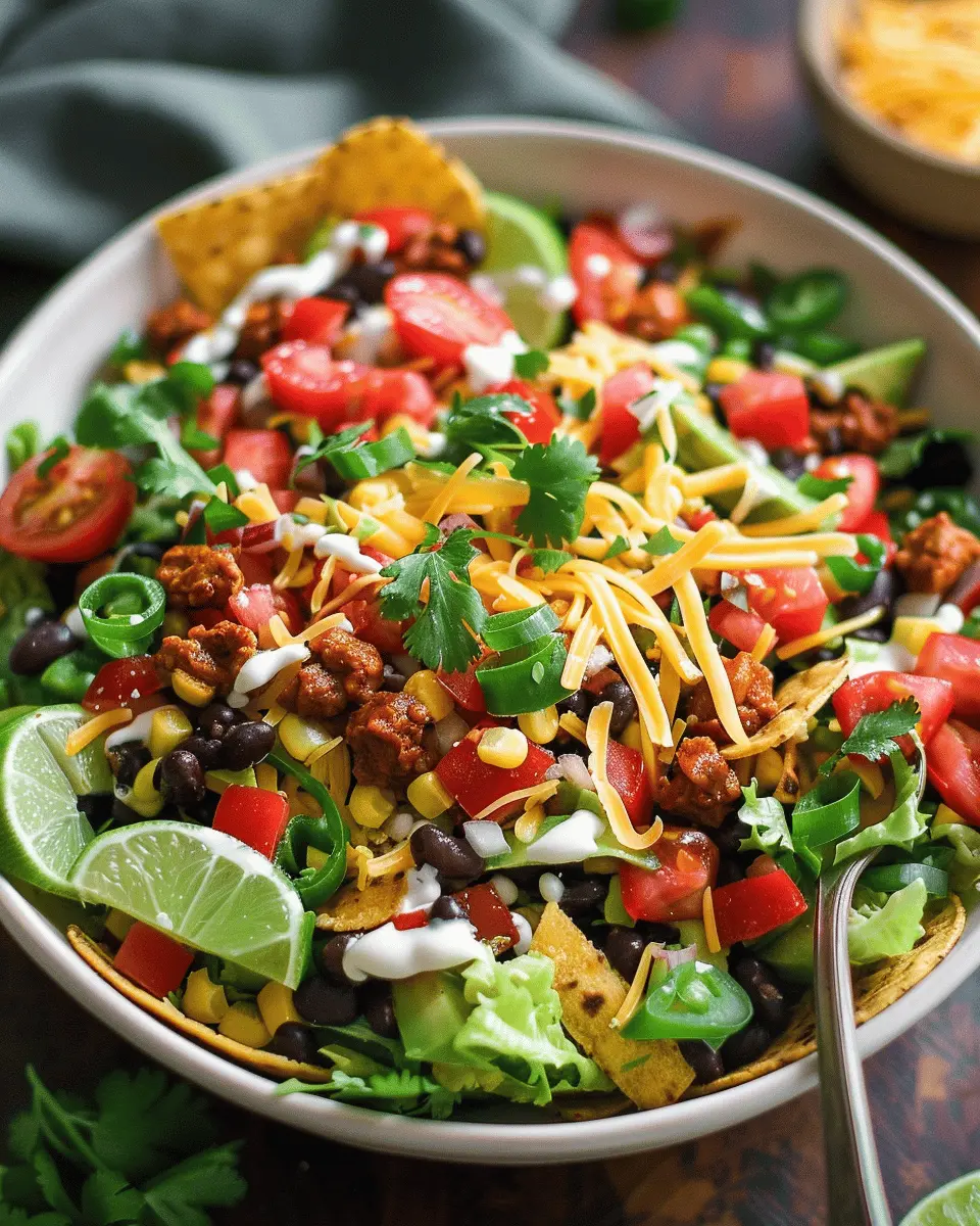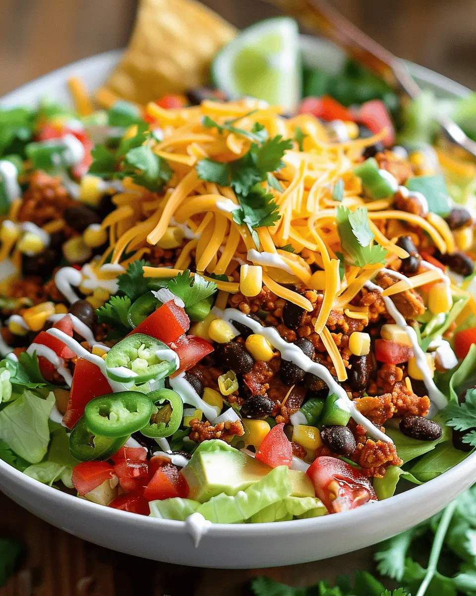 Imagine a salad that is not only visually appealing but also packs a flavor punch, like our Black Bean Taco Salad. It’s a perfect example of how to blend textures and tastes—crunchy lettuce, creamy avocado, and zesty dressing make every bite memorable.