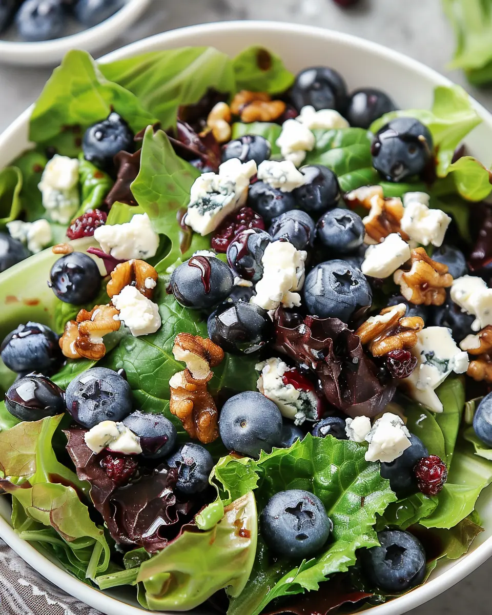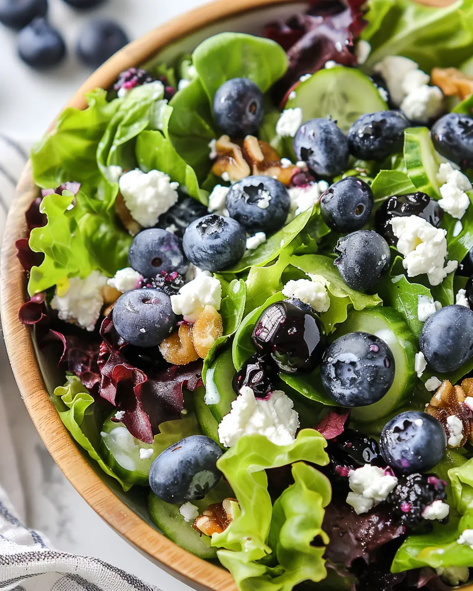 Each of these toppings complements the sweetness of the blueberries beautifully, creating a well-rounded and delicious salad recipe idea.