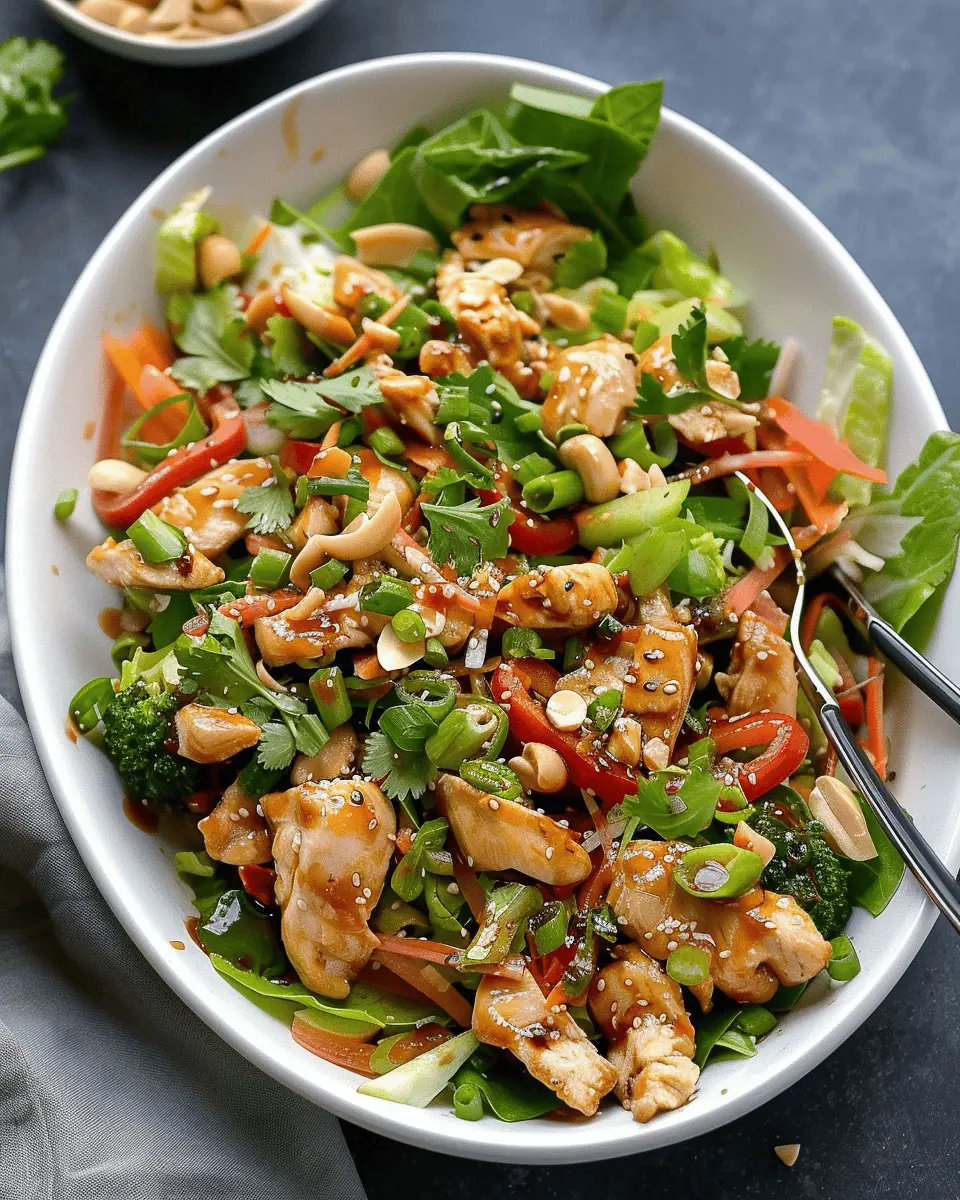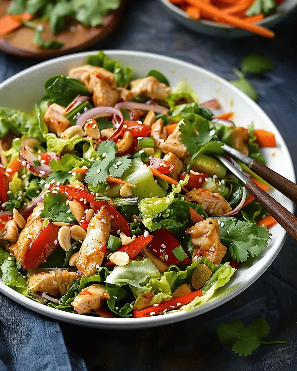 If you’re looking to elevate your Chinese Chicken Salad, consider adding an Asian twist. Picture a vibrant mix of julienned carrots, red bell peppers, and cabbage, all topped with crunchy wontons or chopped peanuts. To enhance the flavors, a dressing made with soy sauce, sesame oil, and a splash of rice vinegar can truly make your salad sing.