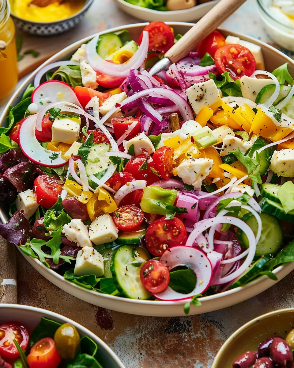 A great dressing can elevate your salad from good to amazing. Opt for classic Italian vinaigrette or a creamy herb dressing to complement all the fresh ingredients. A simple mix of olive oil, lemon juice, salt, and pepper can do wonders. Experiment with different combinations until you find your perfect match!