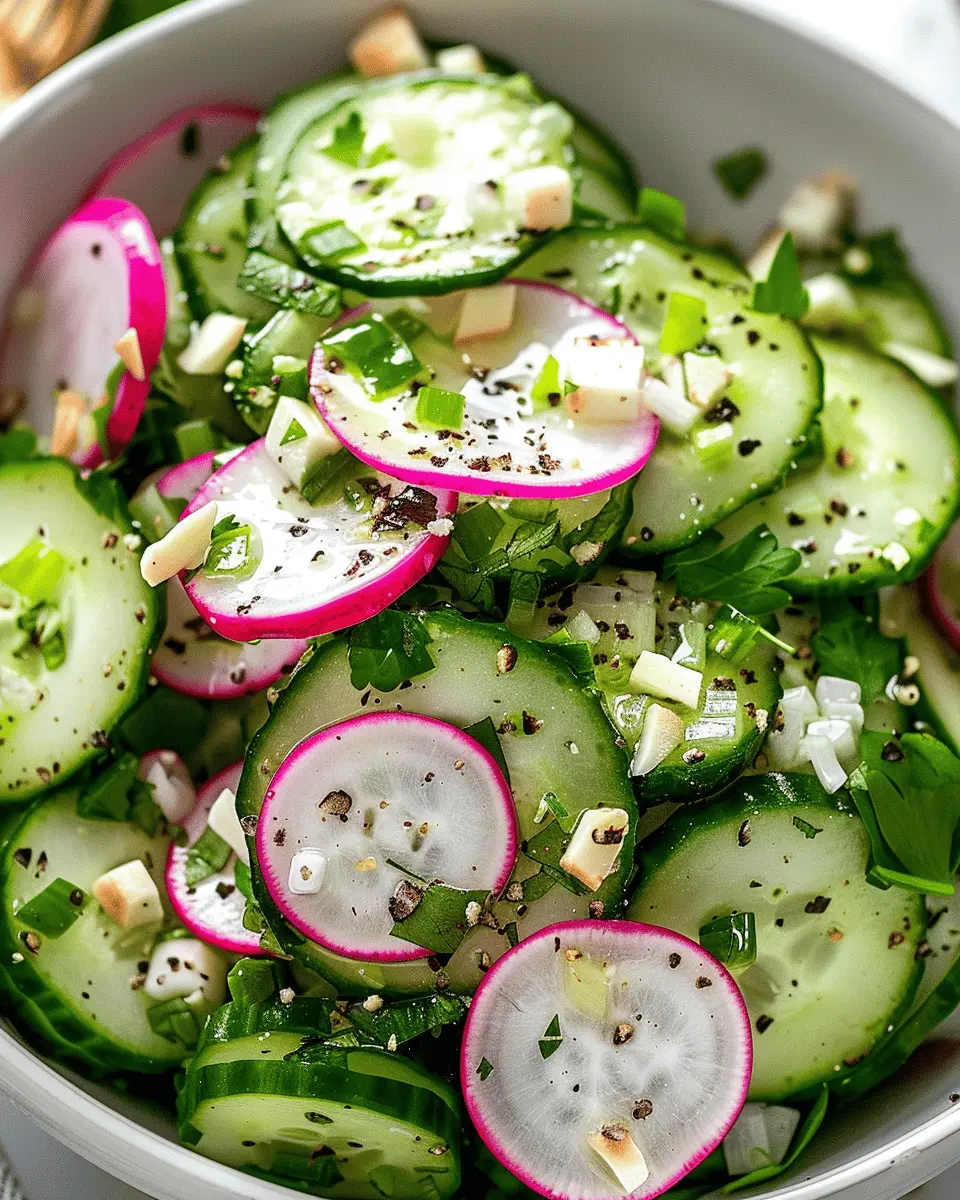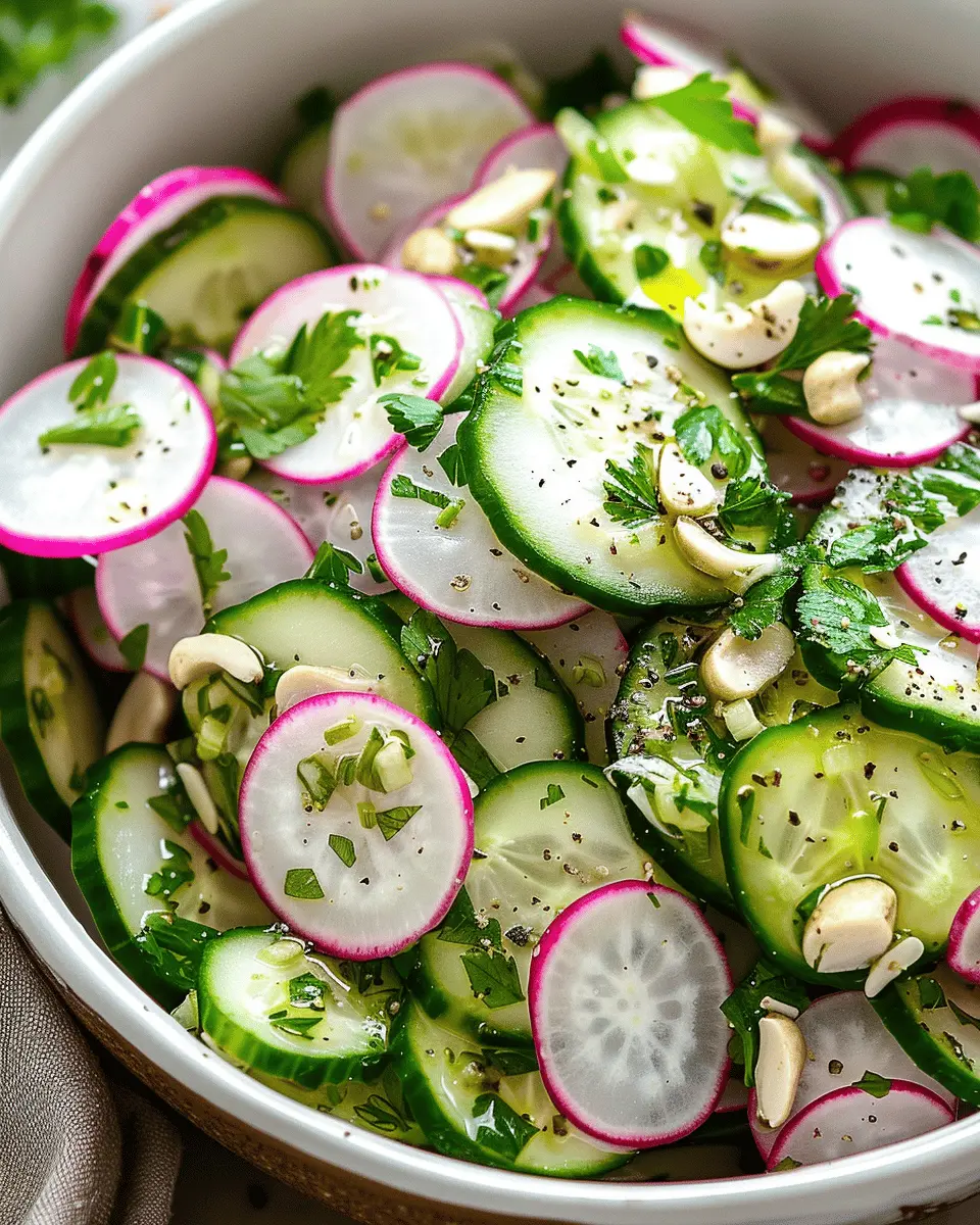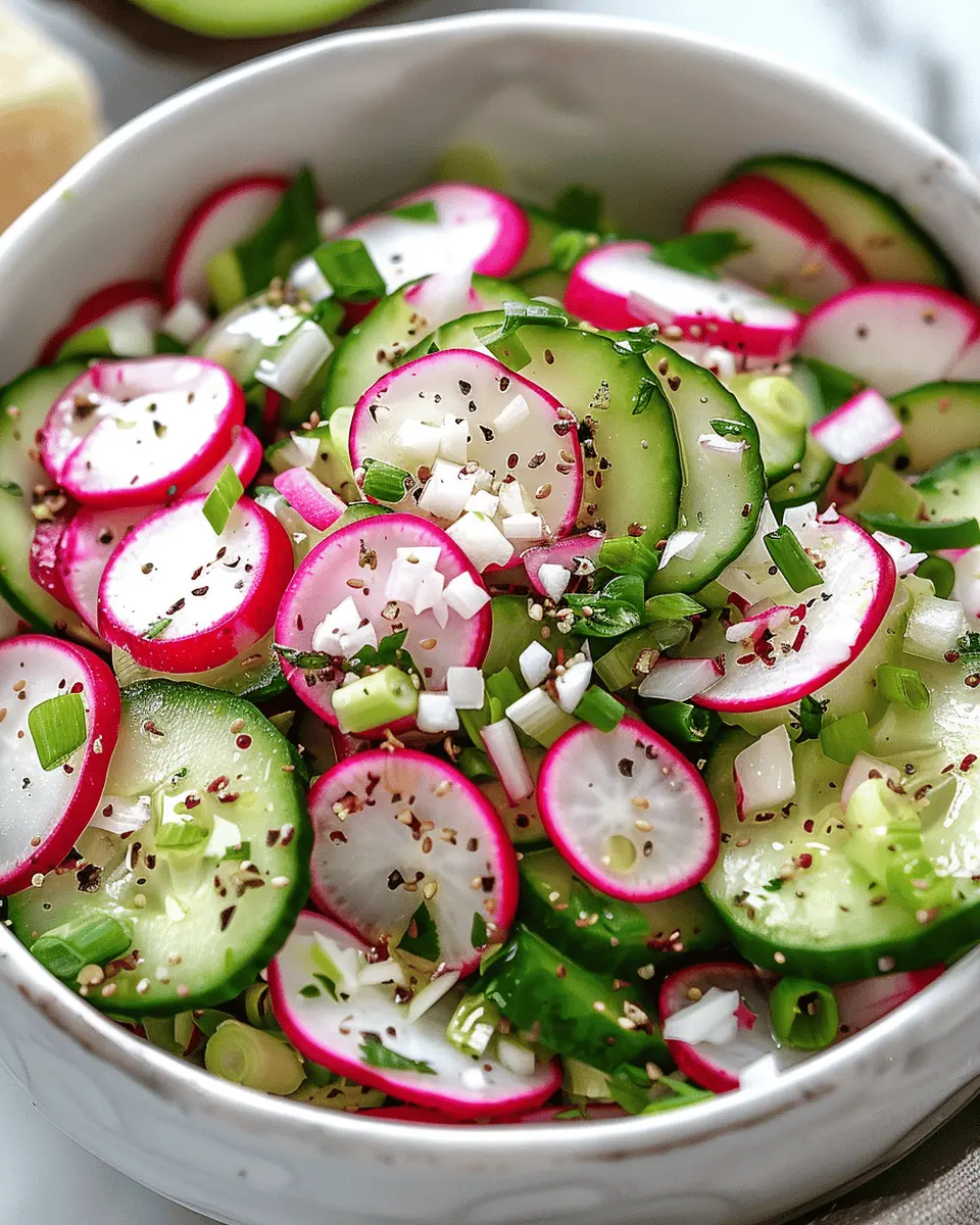 PrintDelicious Salad Recipes Ideas: Fresh Radish and Cucumber Delight