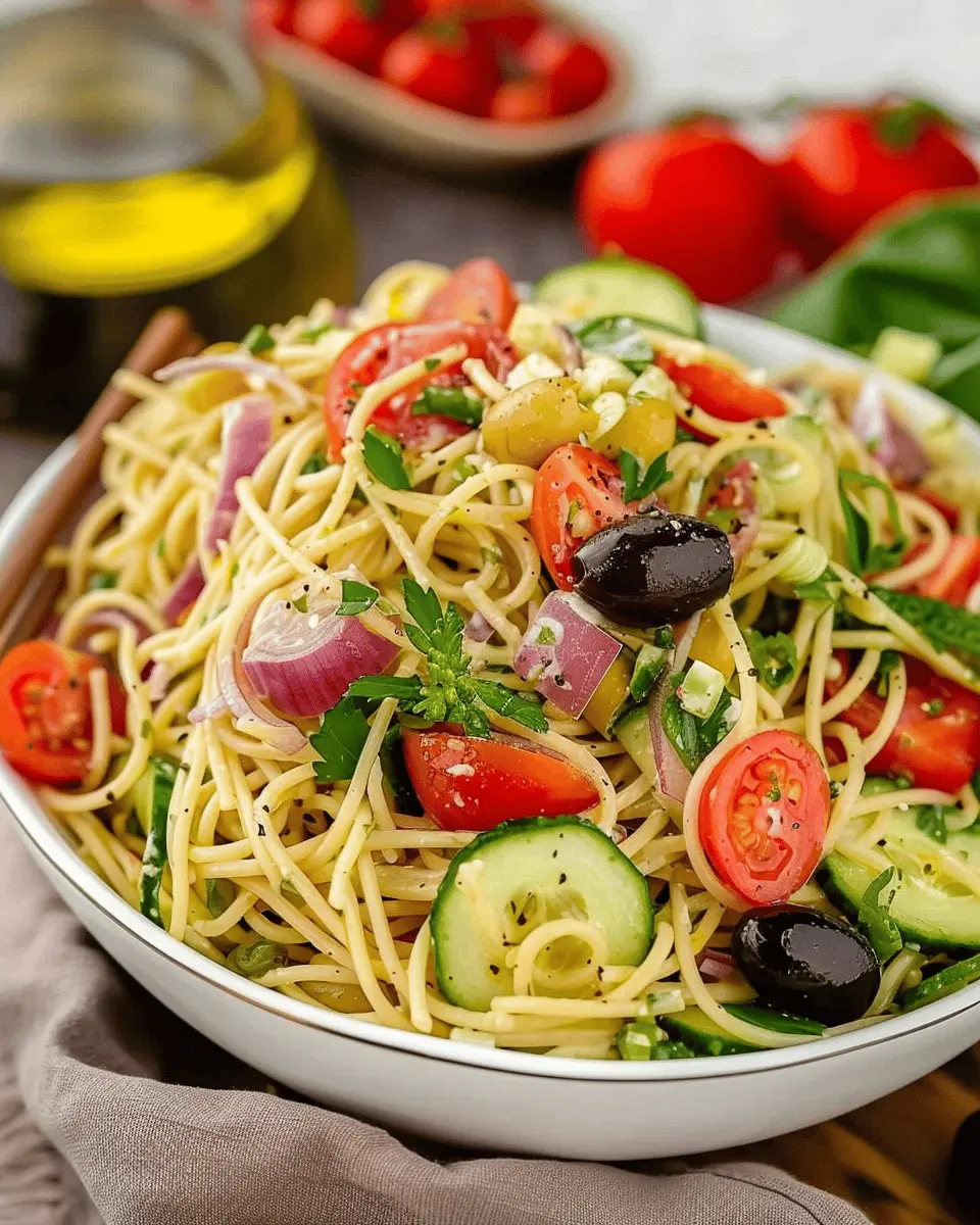 Creating a salad that’s both delightful and filling doesn’t have to be a chore. With the right ingredients and simple steps, you can whip up a spaghetti salad with Italian dressing that will impress even the fussiest eaters. Whether you’re hosting a get-together or just treating yourself to a nutritious meal, let’s walk through the essential steps of crafting this delicious dish.