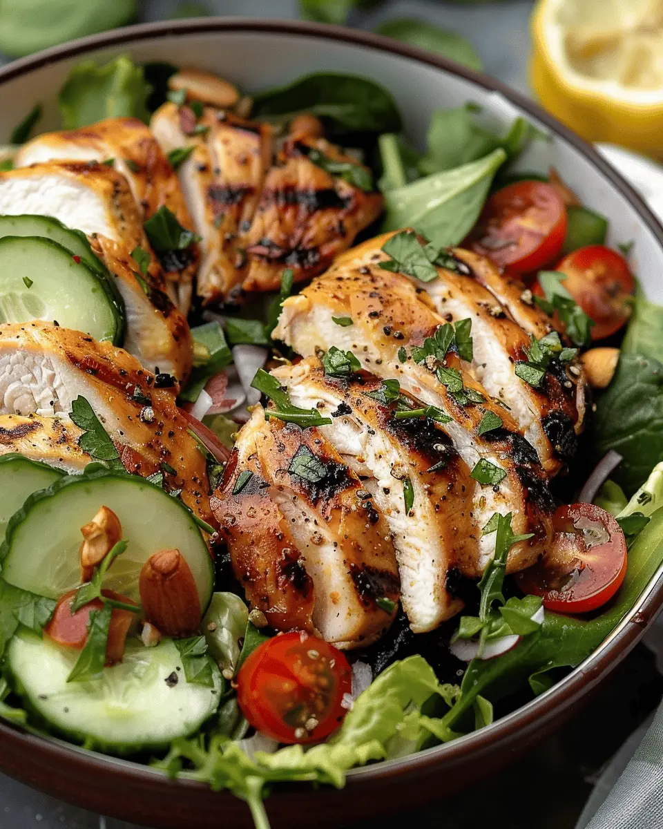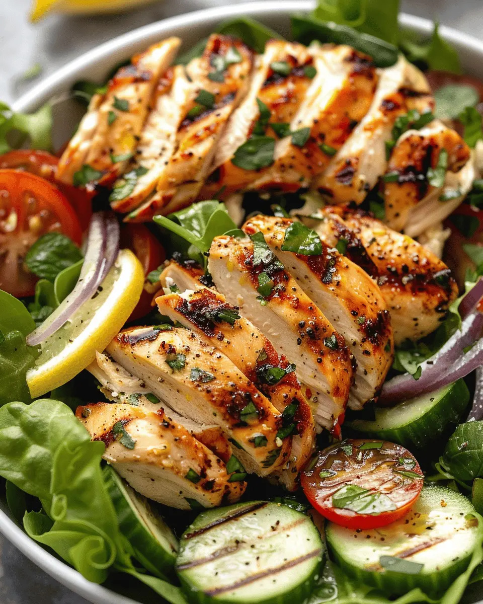 A refreshing and flavorful salad that combines grilled chicken with fresh herbs and a zesty lemon dressing.