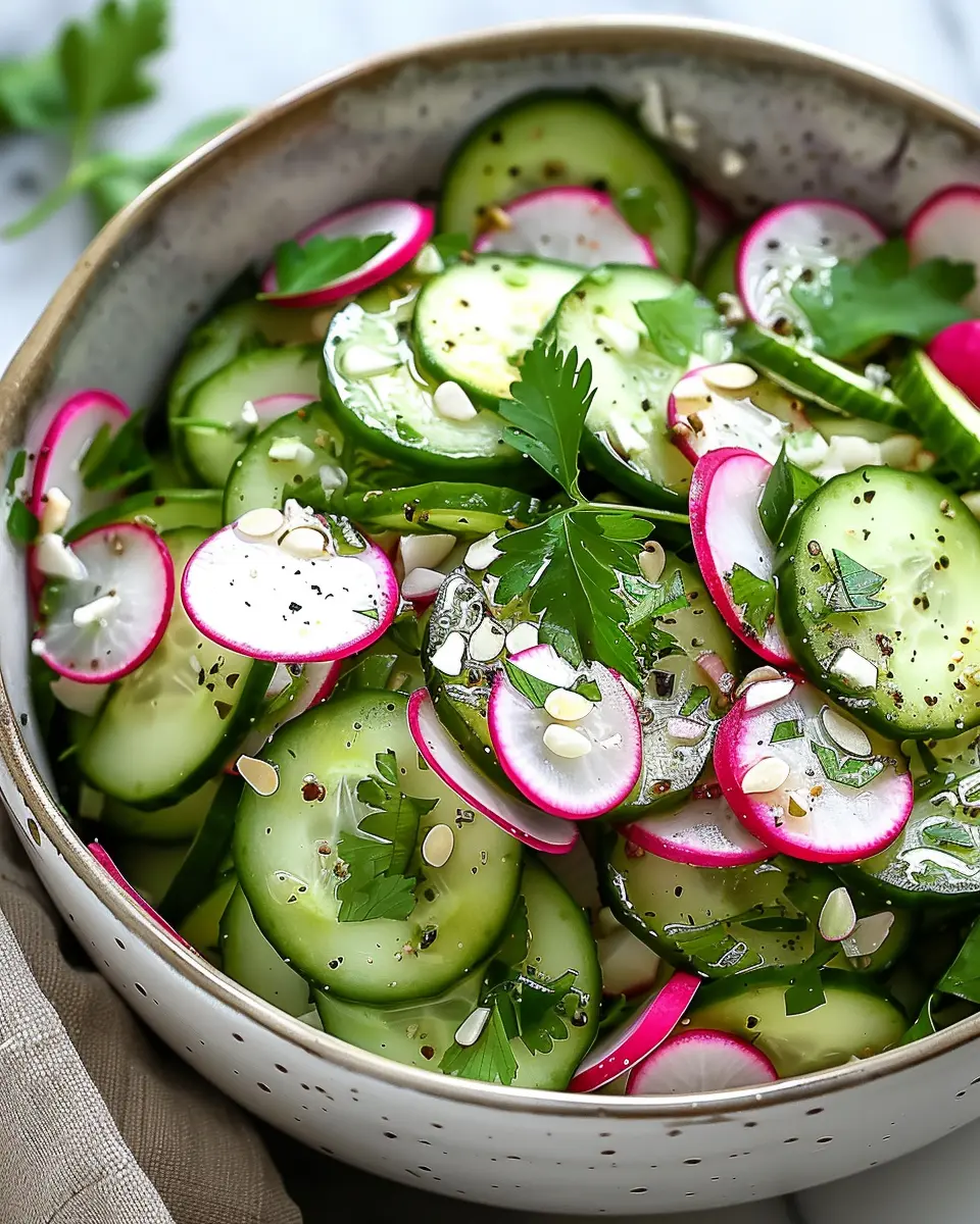 Discover the refreshing taste of our Radish and Cucumber Salad, a perfect dish for any occasion!