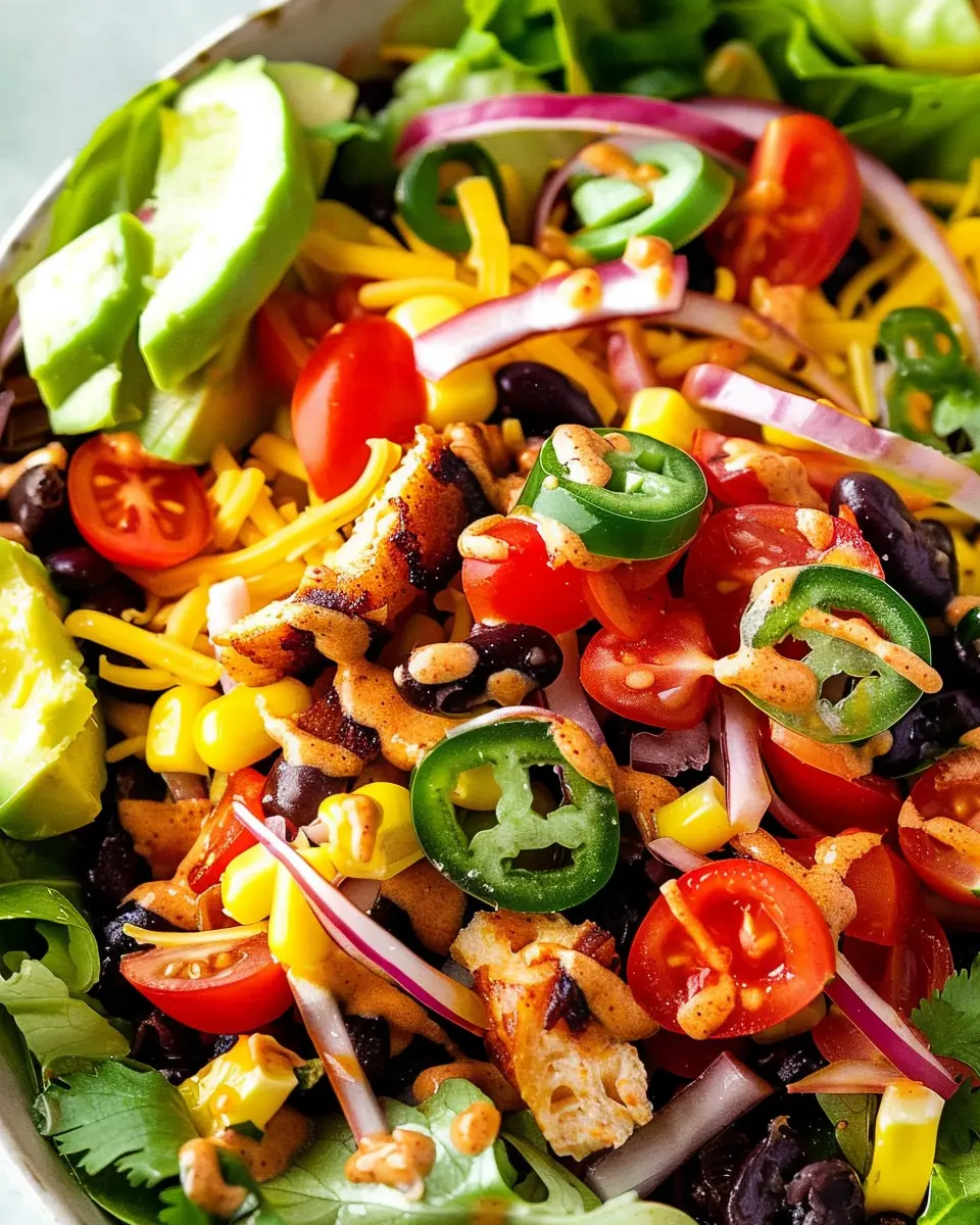 A refreshing and flavorful Spicy Southwest Salad that combines crisp greens with turkey bacon and a zesty spicy ranch dressing.