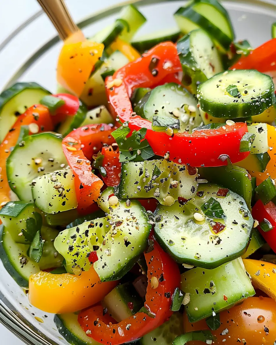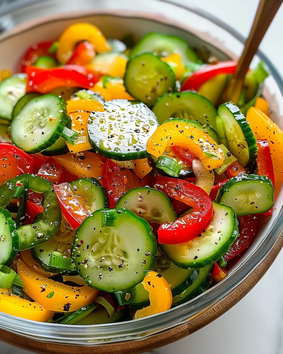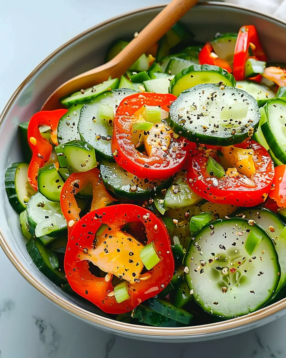 Discover the vibrant and refreshing flavors of this zesty cucumber and bell pepper salad, perfect for any occasion.