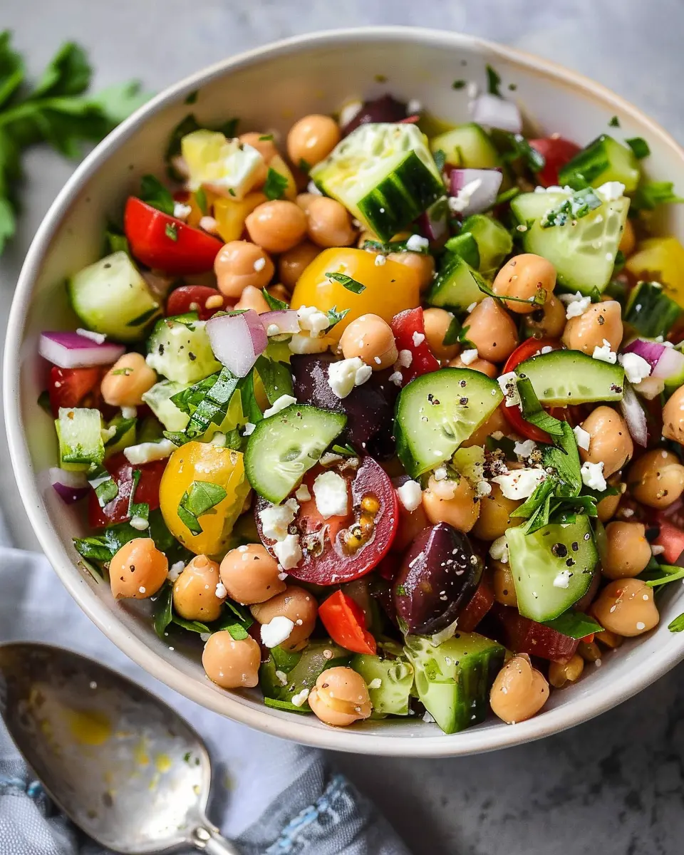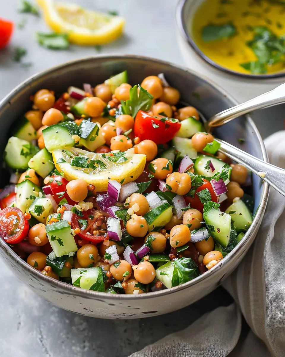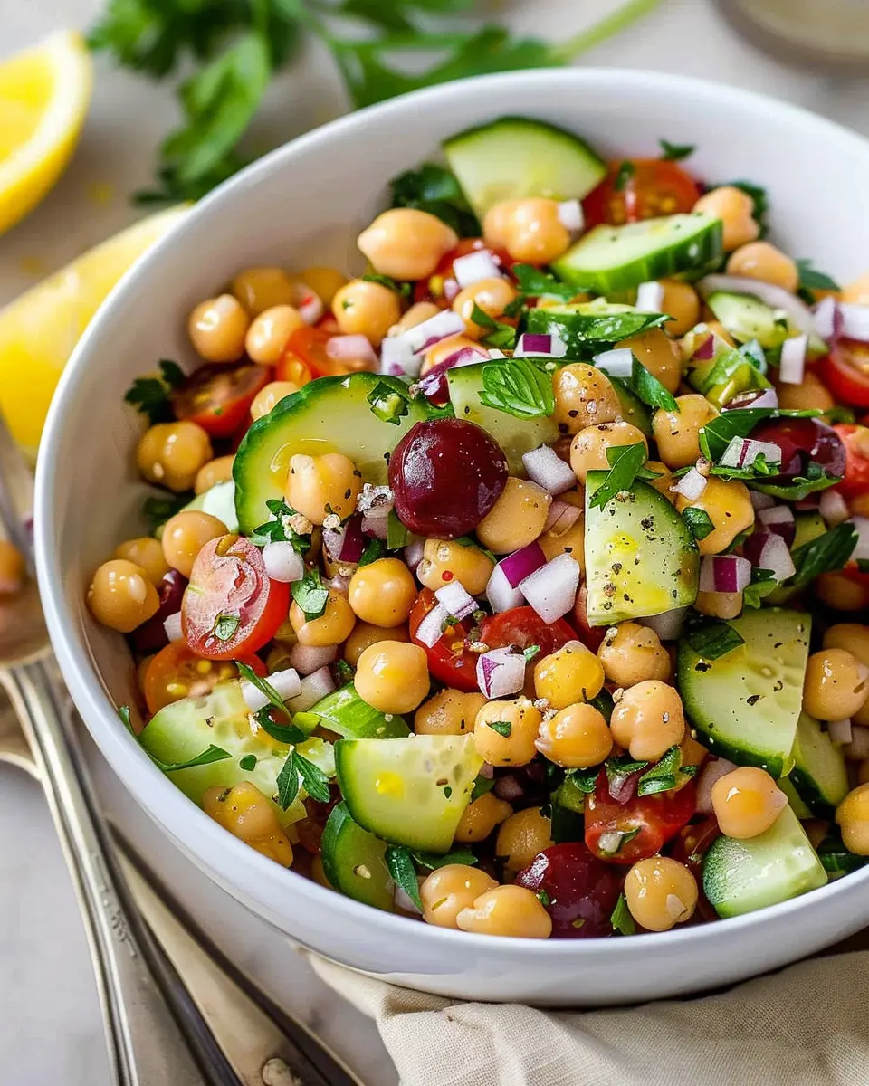 A vibrant and refreshing salad that comes together in just 15 minutes, packed with flavors and nutrition from chickpeas and fresh vegetables.