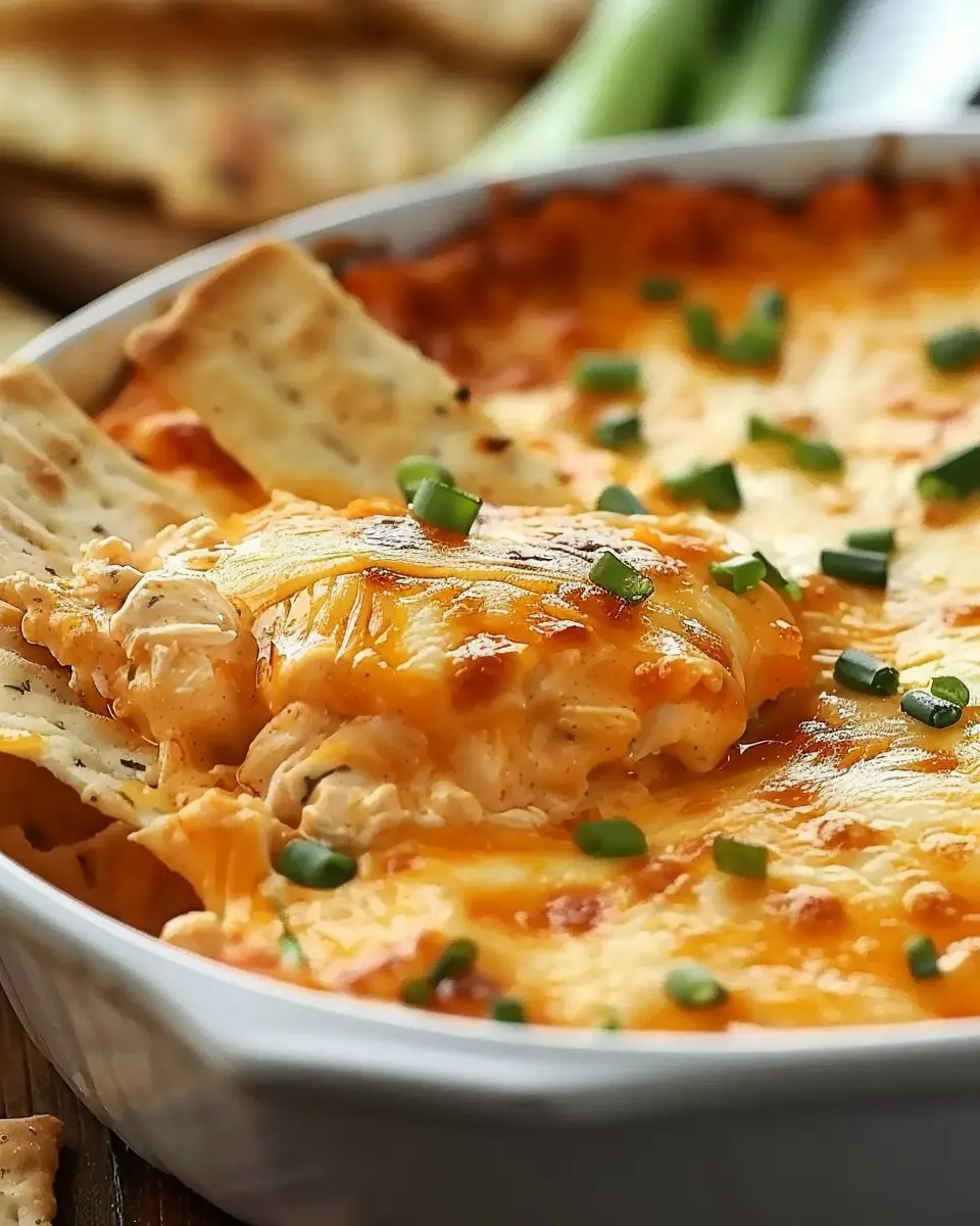 This Easy Cheesy Buffalo Chicken Dip is the perfect indulgent treat for any game day gathering, loaded with flavors and cheesy goodness.