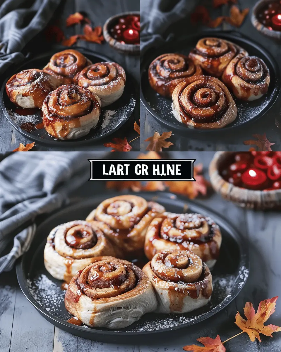 • Fun Serving Platters: Arrange your cinnamon rolls on a skull-shaped platter, or serve them in mini cast iron skillets for a rustic touch.