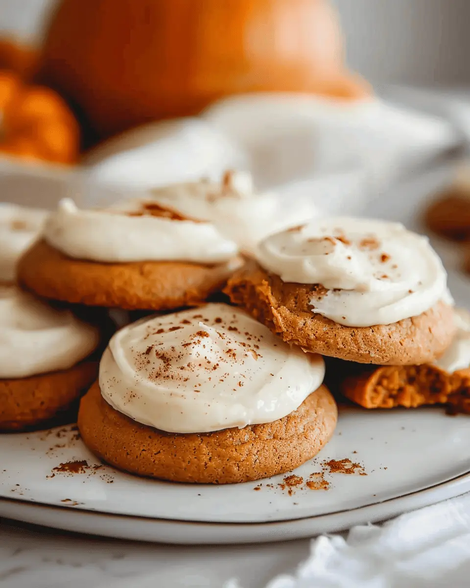 Delight in these easy pumpkin cookie recipes, featuring soft, chewy cookies topped with a luscious cream cheese frosting.