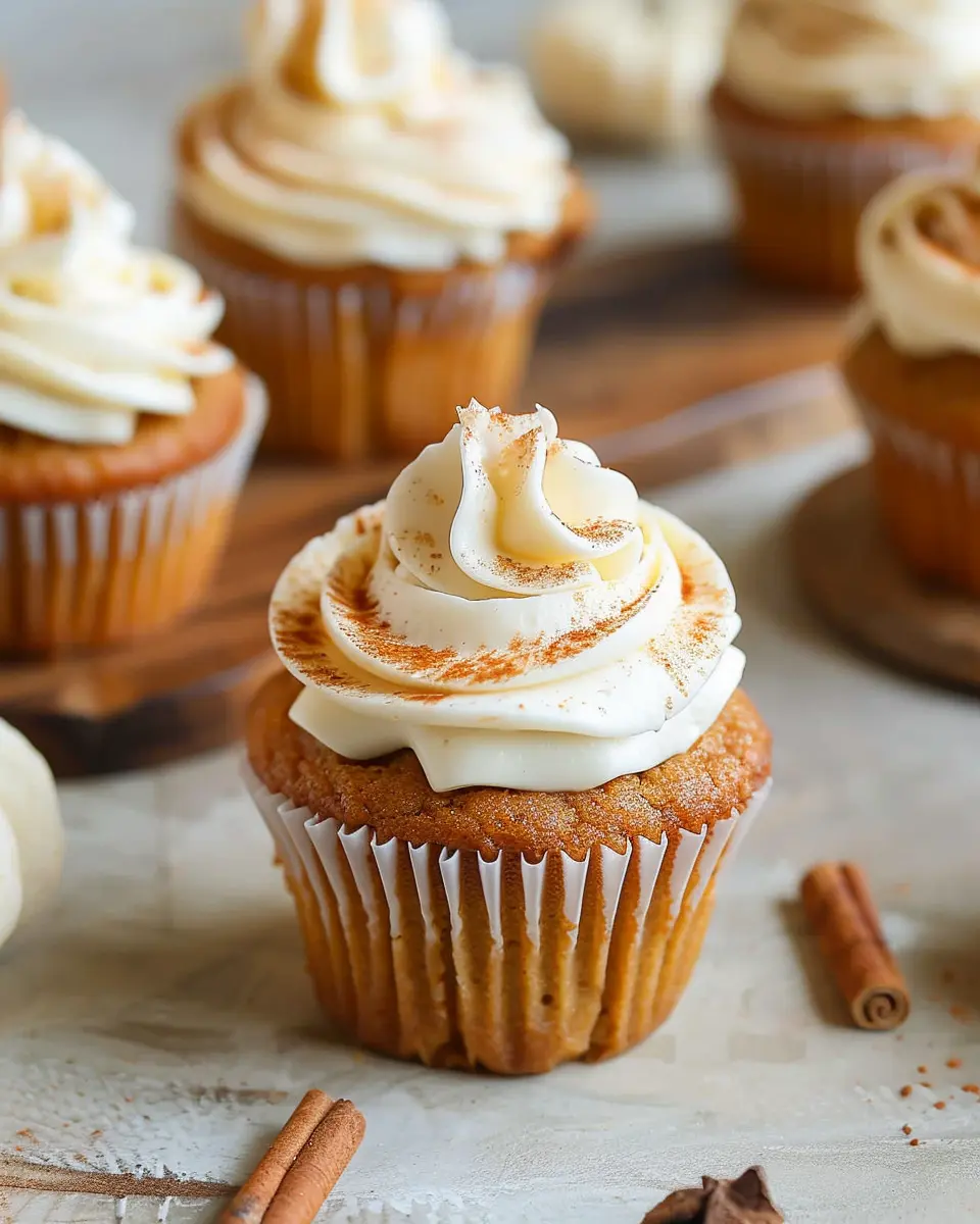 Deliciously moist pumpkin cupcakes paired with rich cream cheese frosting, perfect for fall.