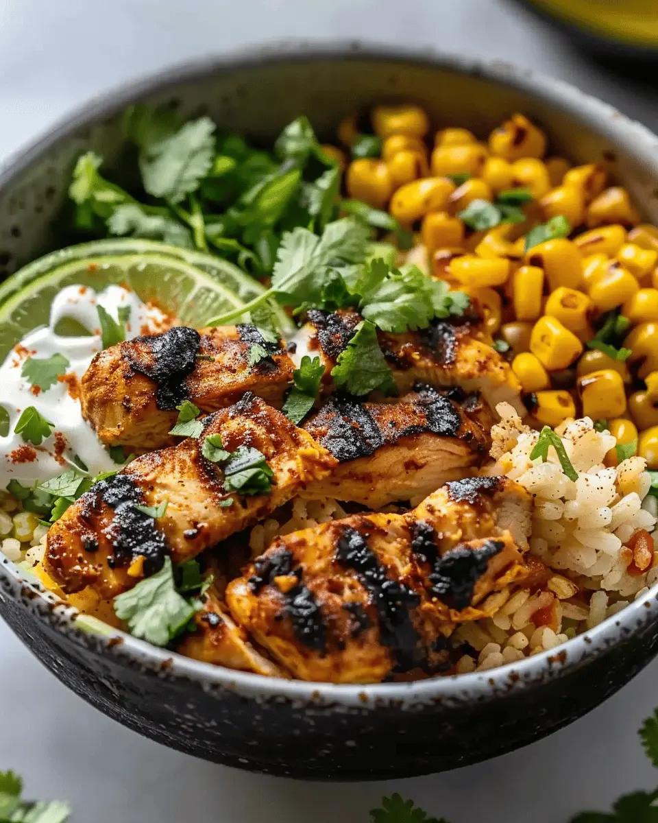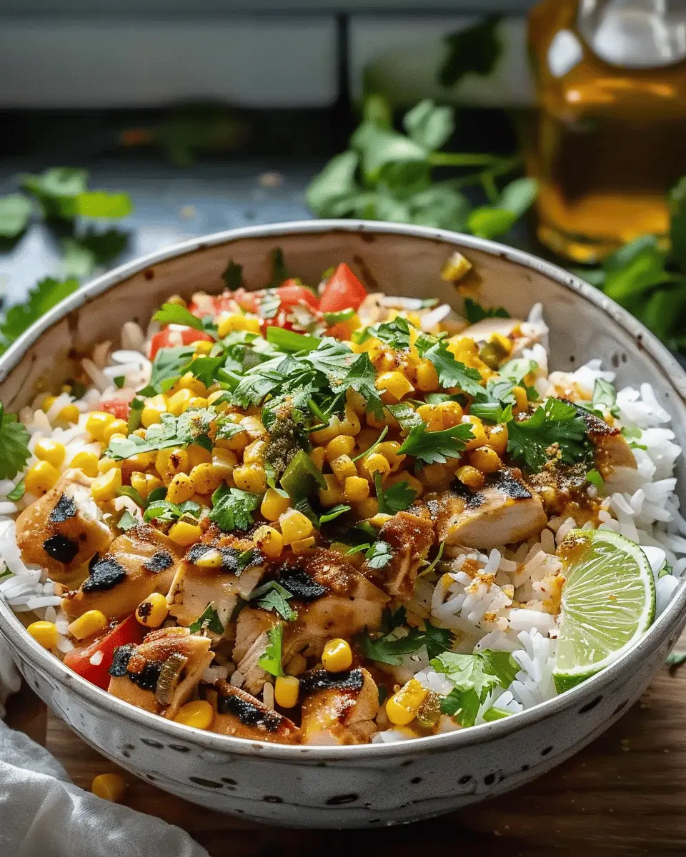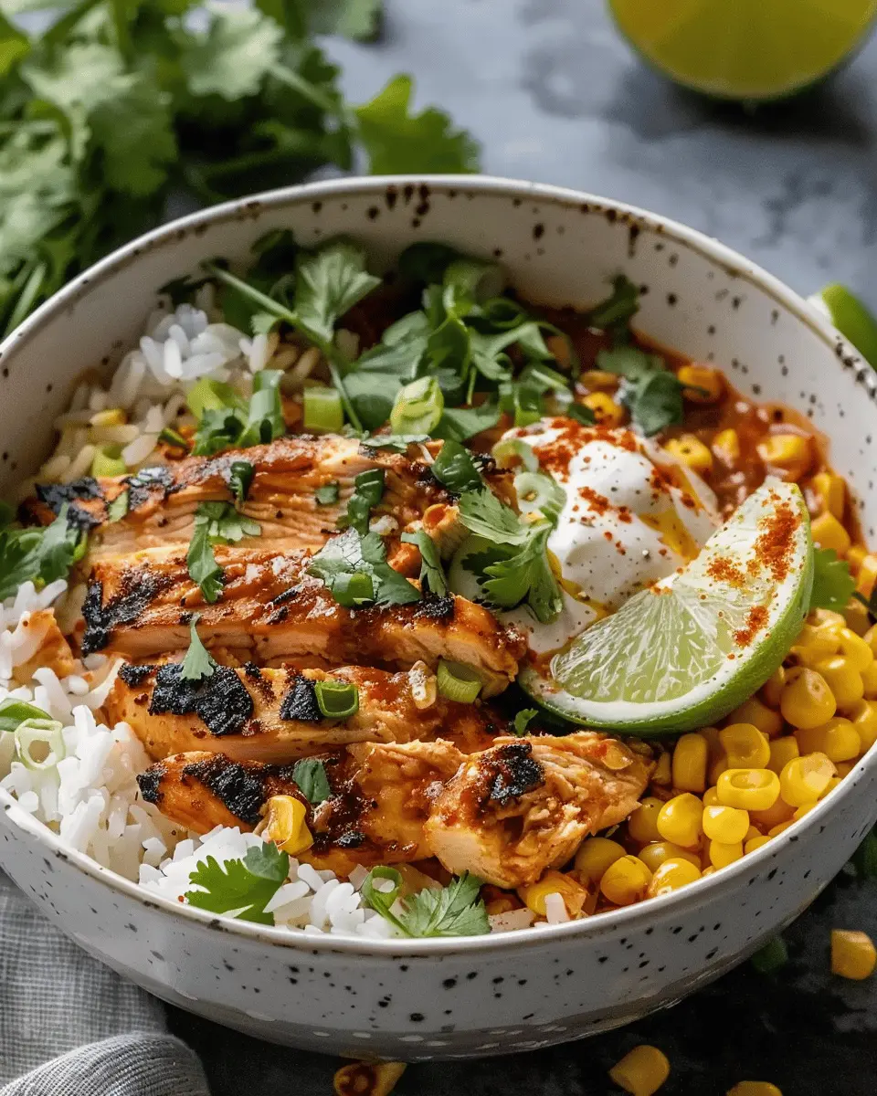 A delicious and easy street corn chicken rice bowl recipe that combines flavorful ingredients for a satisfying dinner.