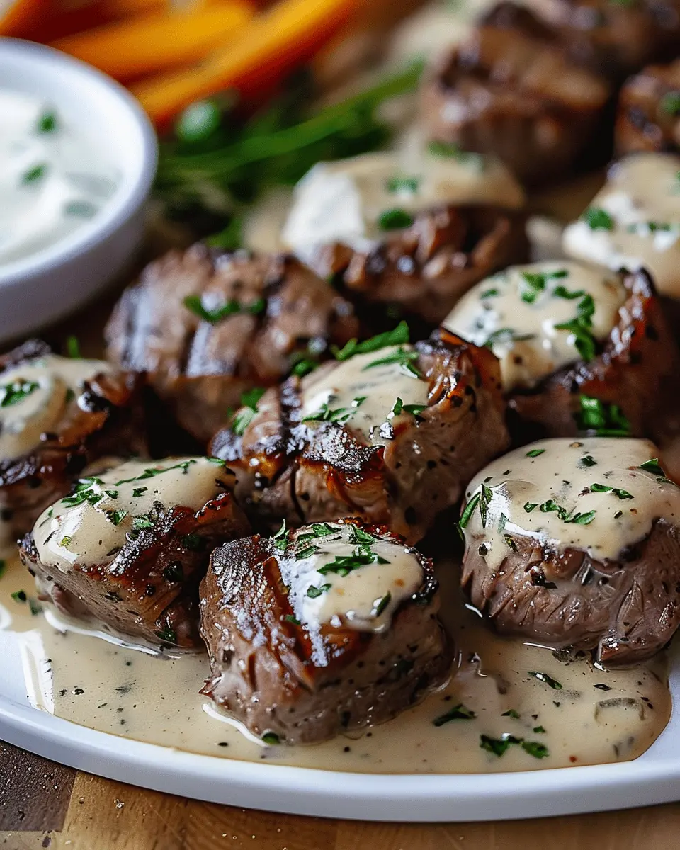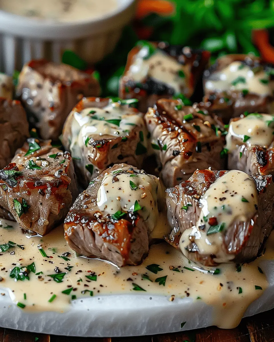 Keywords: Easy Recipes Dinner, Garlic Butter, Steak Bites, Parmesan Cream Sauce