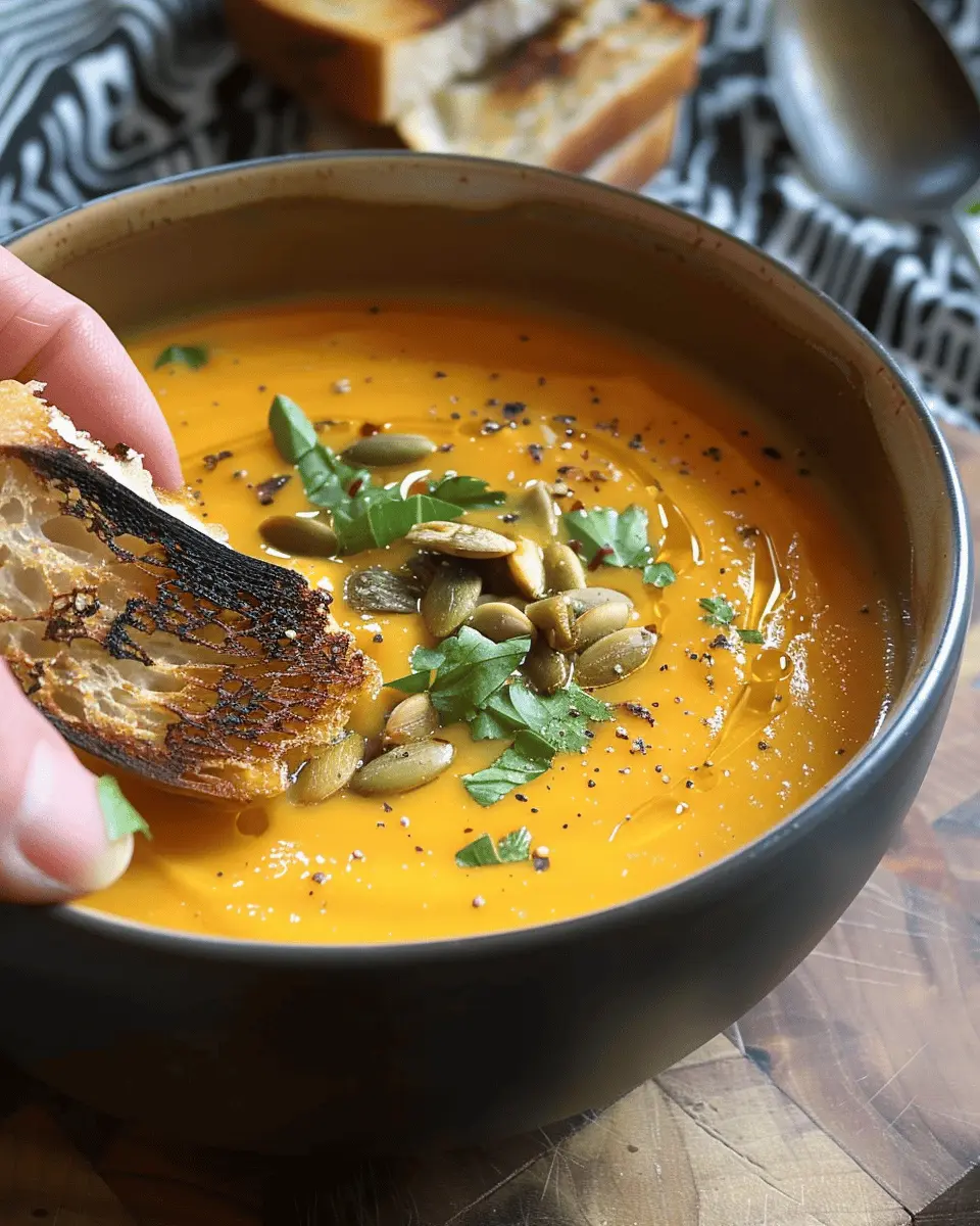 To elevate your soup to a whole new level, garnish it with a few thoughtful touches. A sprinkle of toasted pumpkin seeds not only adds a delightful crunch but also packs extra protein. A swirl of coconut cream can bring a touch of creaminess, while finely chopped fresh herbs like cilantro or parsley provide a pop of color and flavor. Don’t forget a dash of smoked paprika or cayenne pepper for those who enjoy a bit of heat!