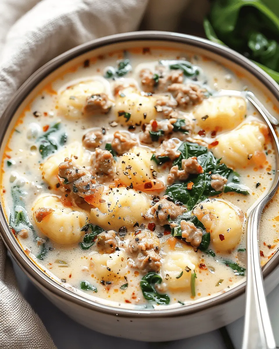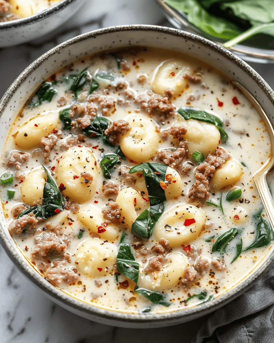 When crafting your delicious Gnocchi Zuppa Toscana, it’s essential to keep an eye on the nutritional content. A typical serving size is about 1 cup, packing around 350 calories. This can vary slightly based on your ingredient choices, particularly if you add extra greens or opt for a different protein.