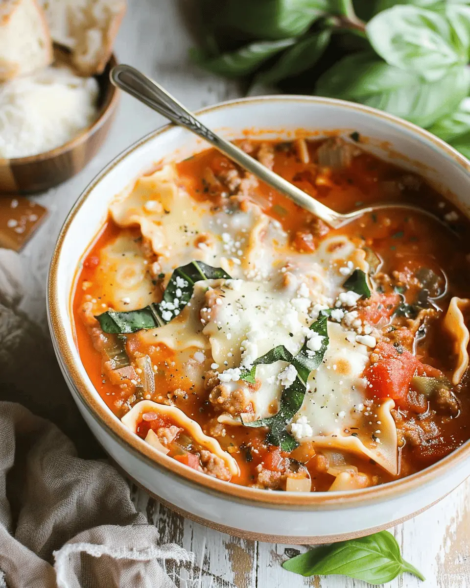 A deliciously creamy lasagna soup that combines the flavors of traditional lasagna with the simplicity of a quick soup recipe.