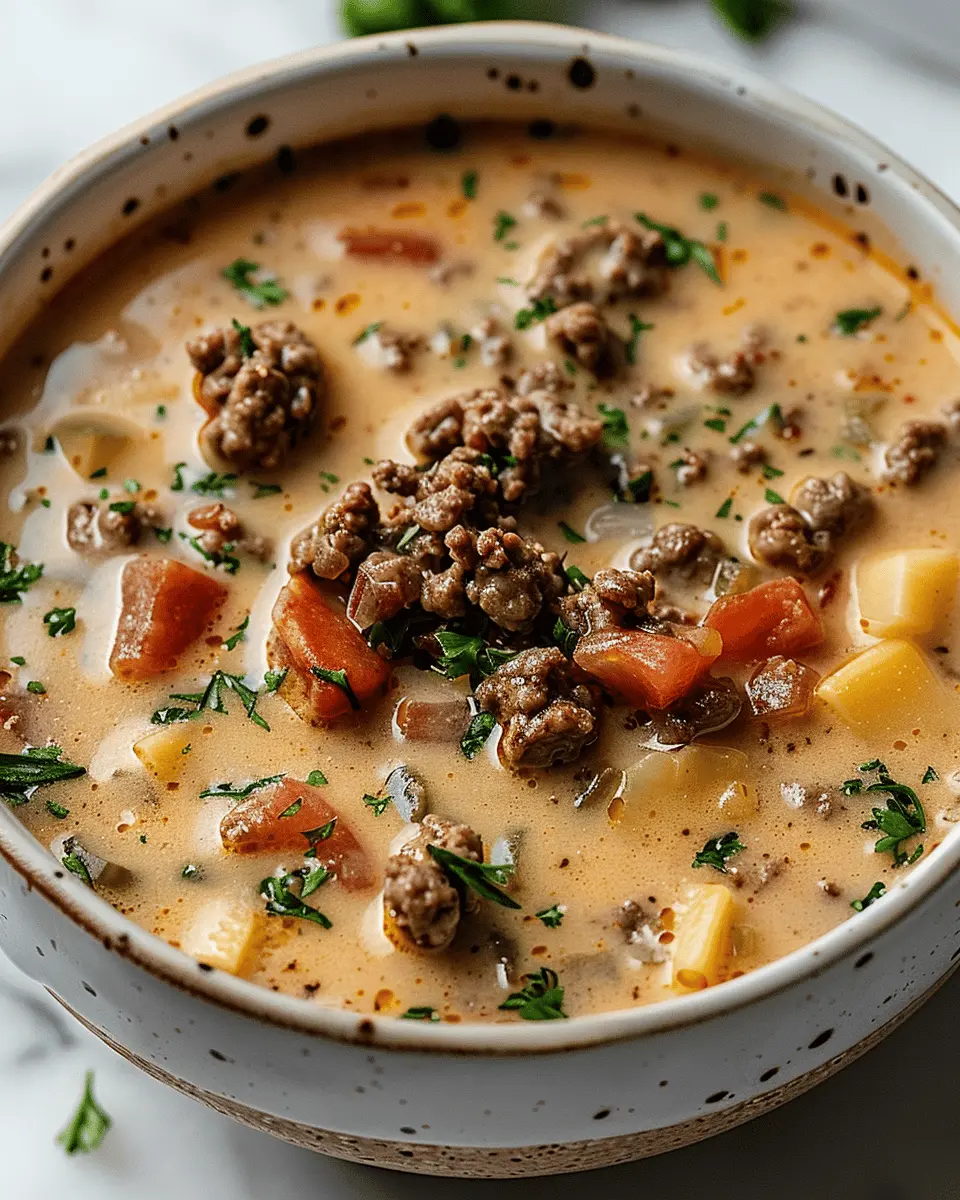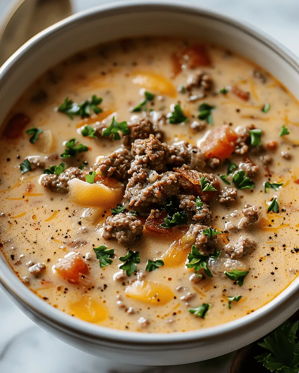 Before you dive into making your smooth and savory soup, take a moment to gather all your ingredients. For cheeseburger soup, you’ll need: