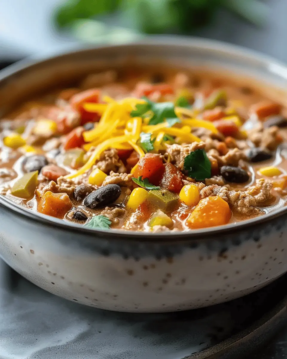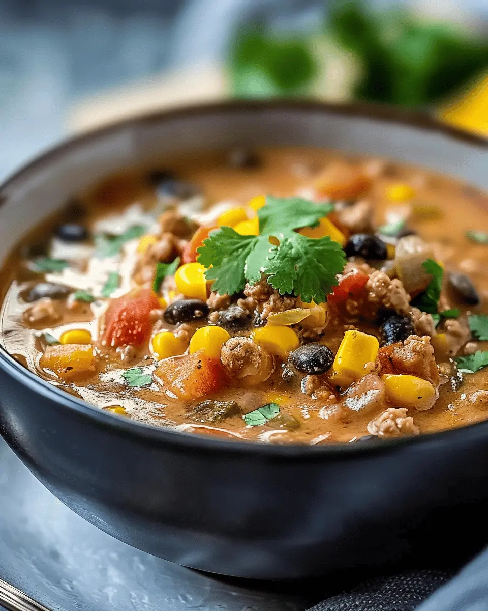 A deliciously creamy and protein-rich taco soup featuring turkey bacon that is easy to make and perfect for any meal.