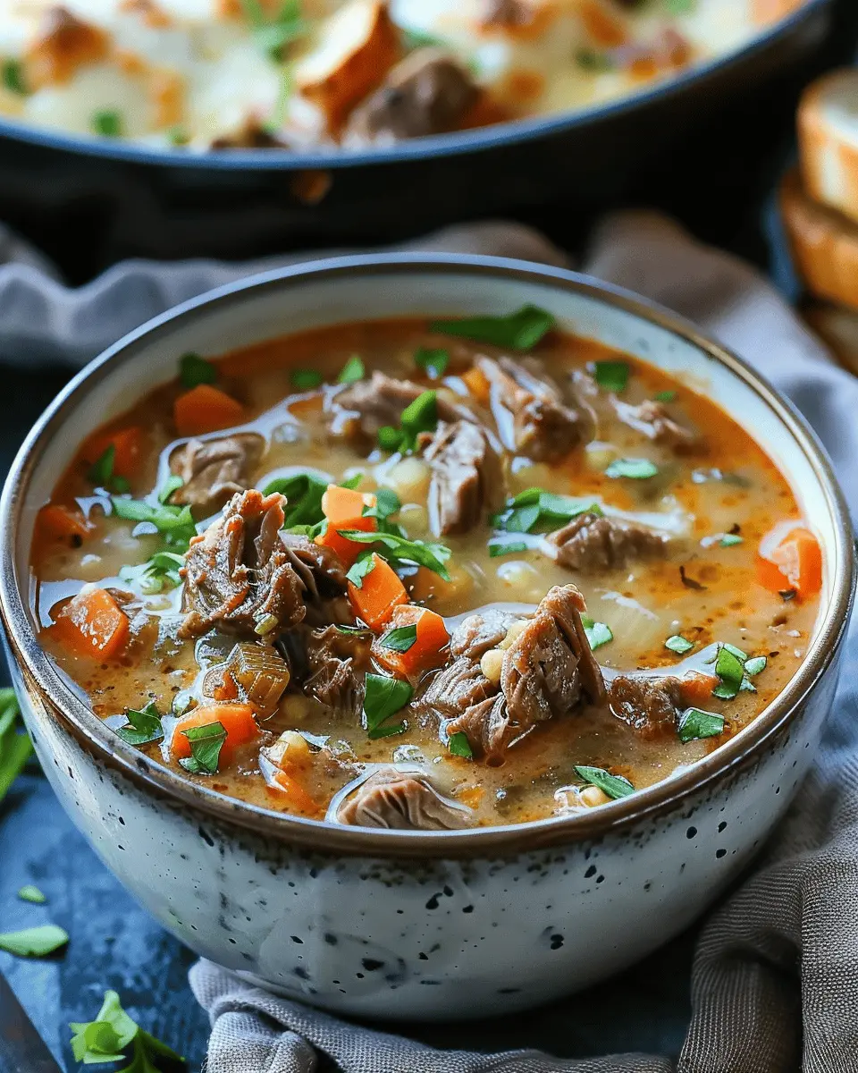 Philly Cheese Steak Soup is a hearty and comforting dish that brings the flavors of a classic sandwich to a warm bowl of soup. Perfect for chilly days!