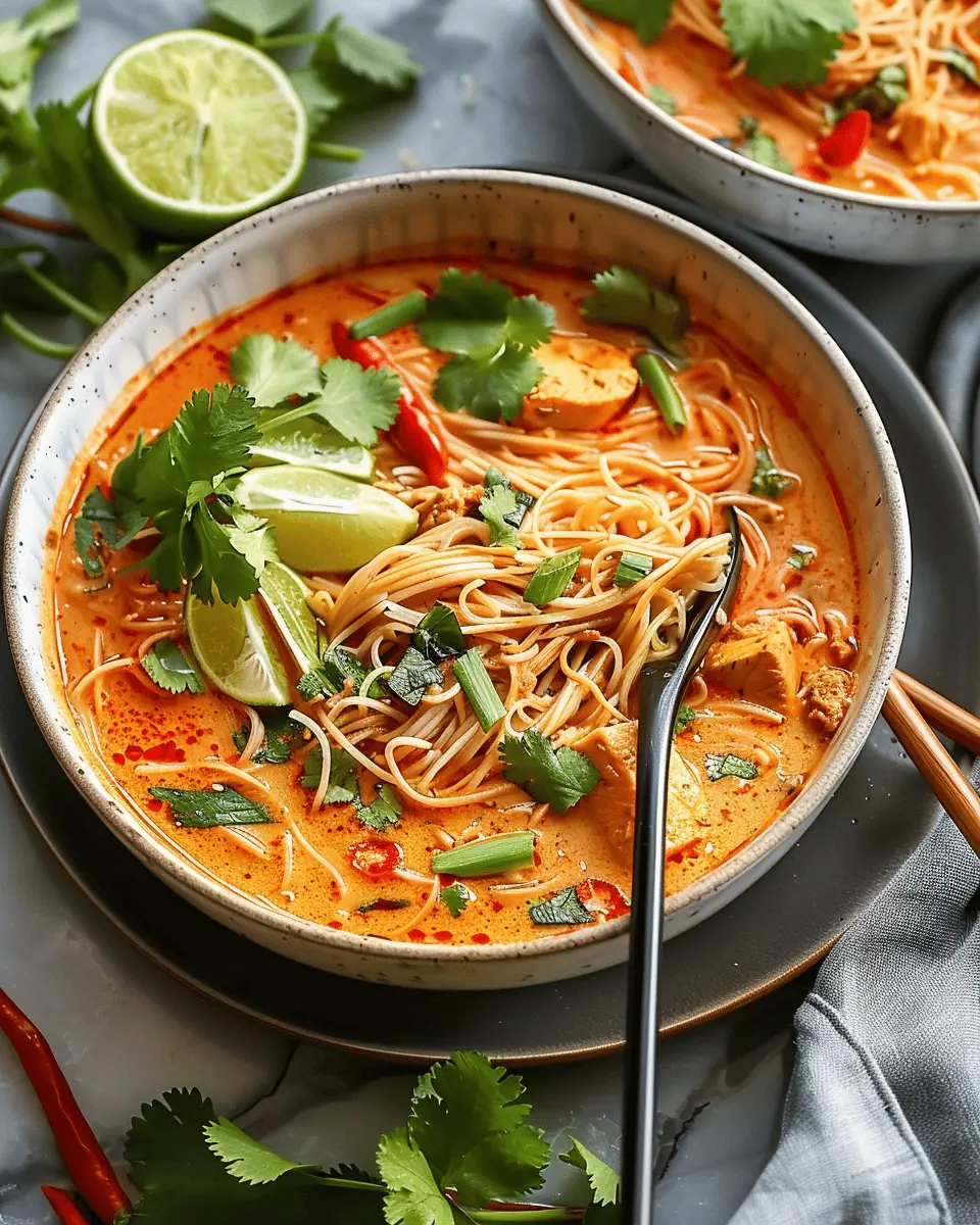 Whether you’re hosting a dinner or enjoying a quiet night in, these suggestions will make your Thai Red Curry Noodle Soup a hit! For more serving ideas, check out this article on soup sides.